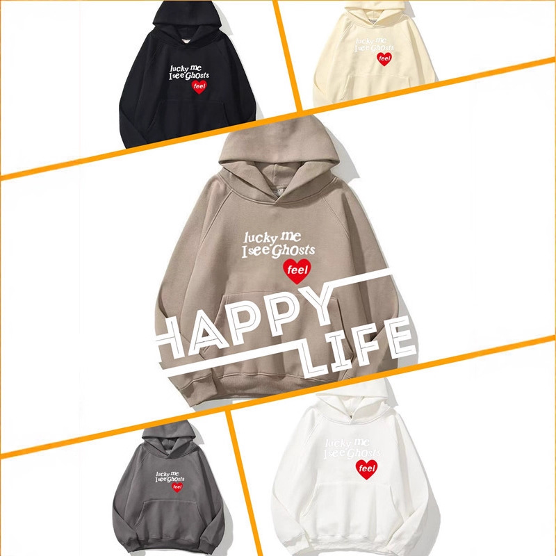 插肩袖双层帽高街印花潮牌卫衣情侣连帽衫logo男女卫衣秋冬连帽衫