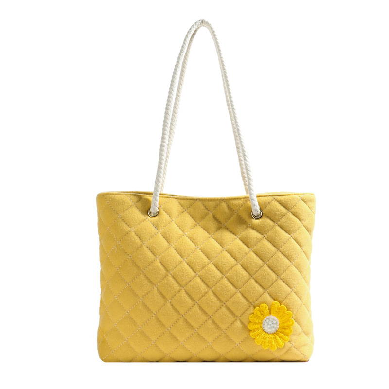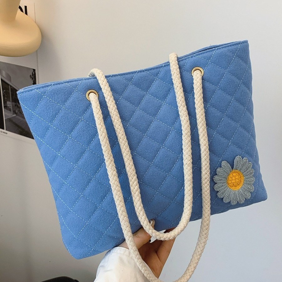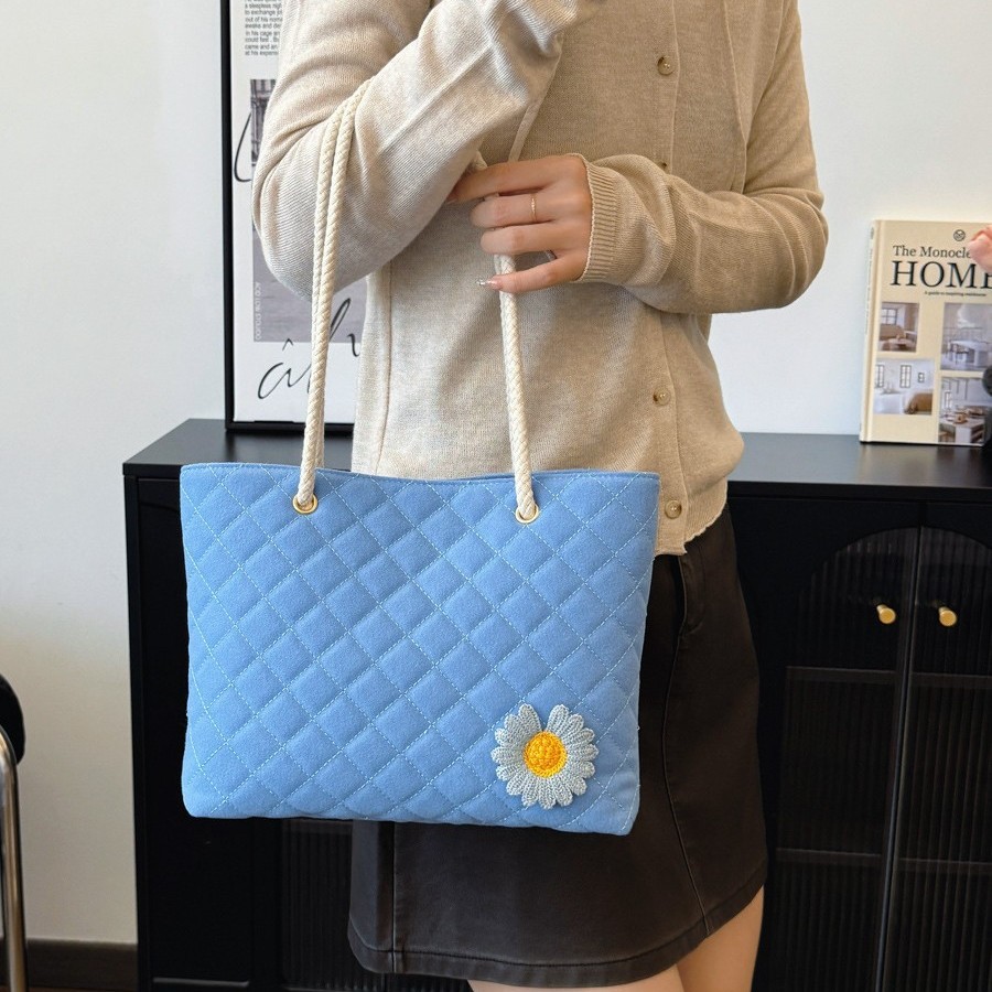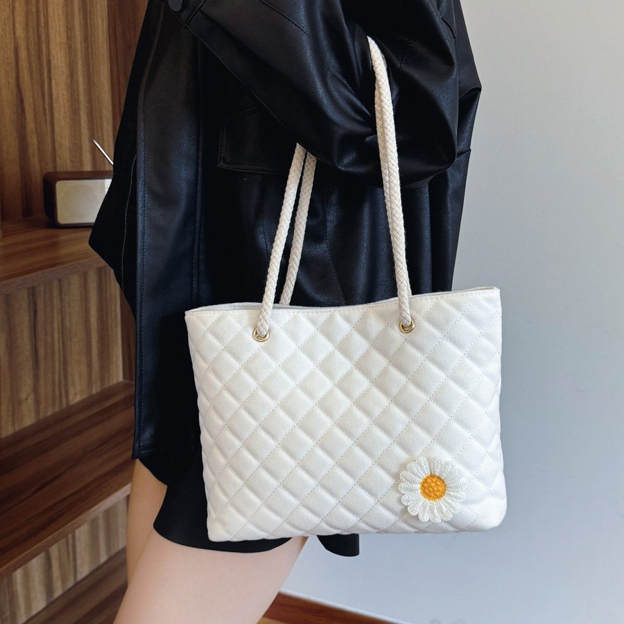 大容量女手提包2025秋季新款太阳花通勤ins菱格托特小清新单肩包