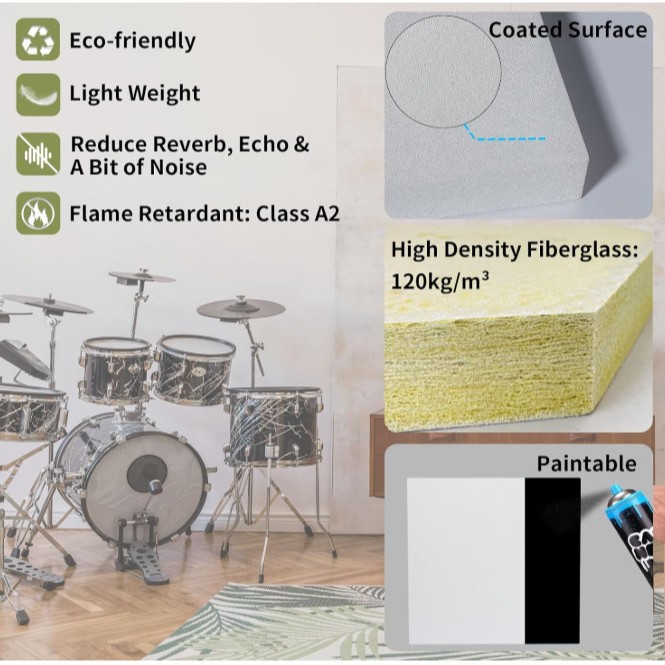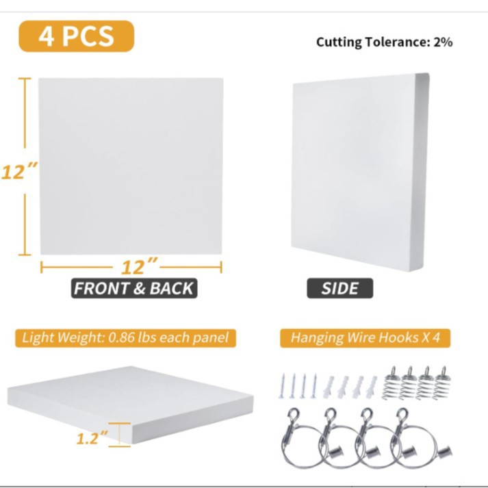 Acoustic Ceiling Panels - 12 X 12 X 1.2 Inches 4Pcs Coated