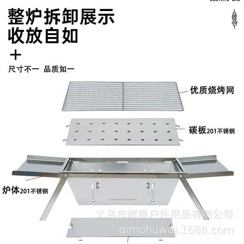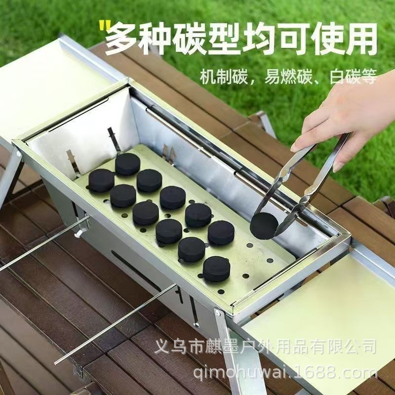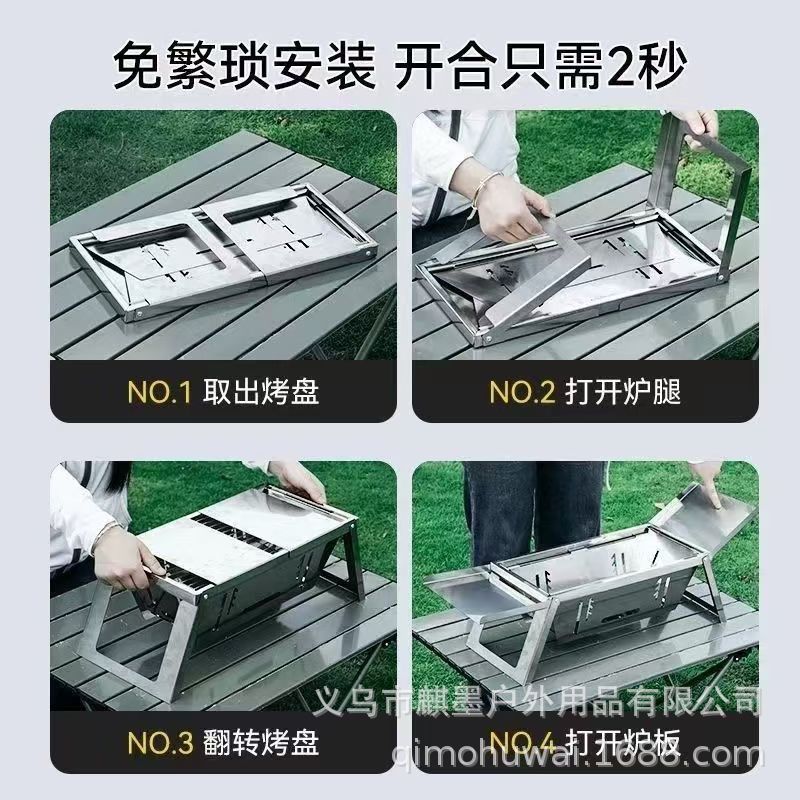 新款加厚不锈钢折叠式烧烤炉家用户外露营便携式烤炉带置物板便携