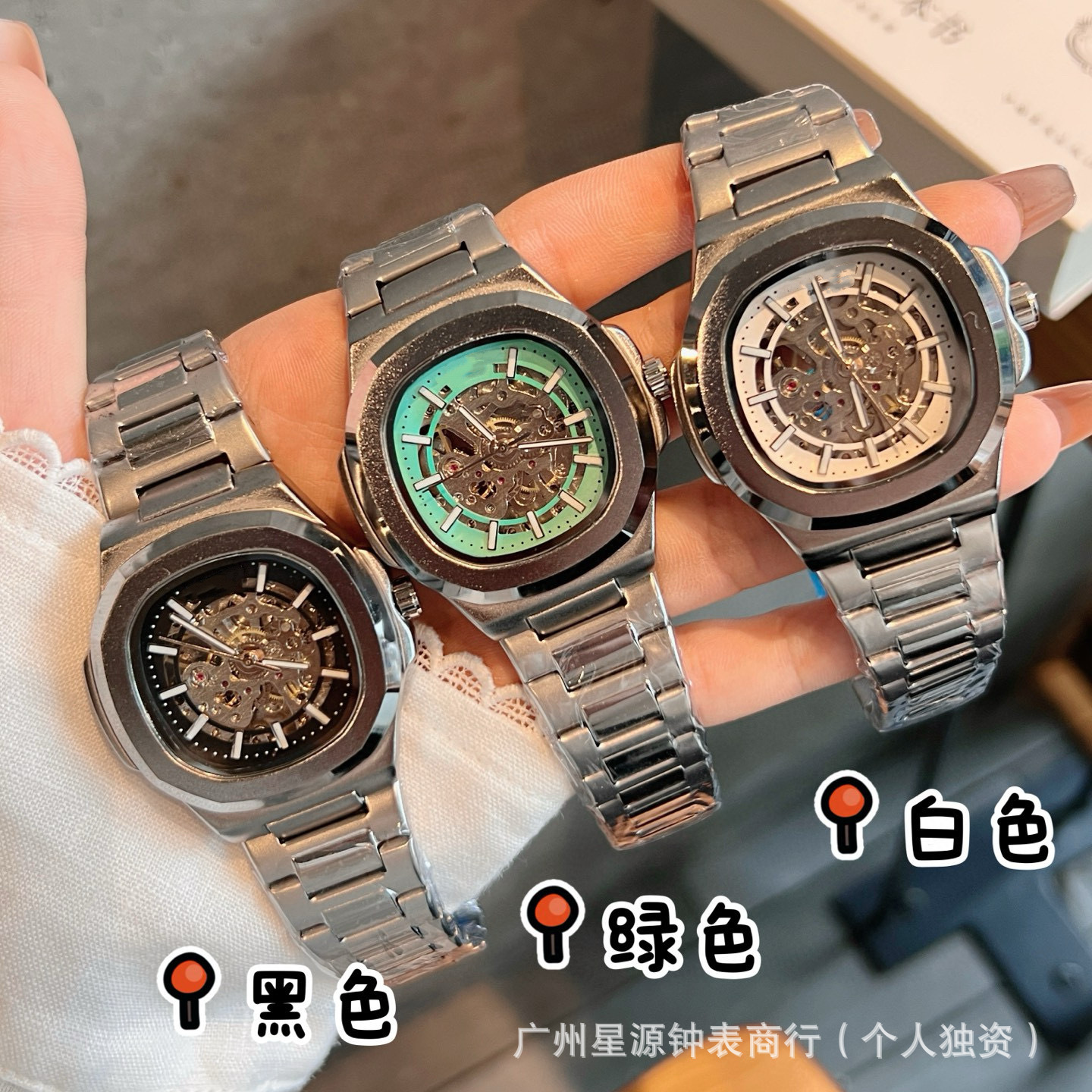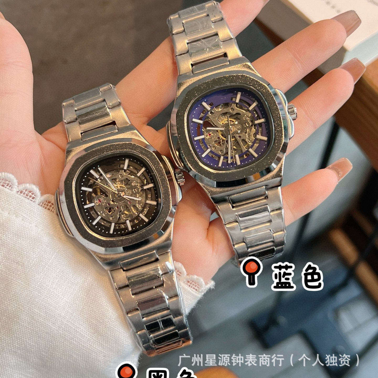 时尚全自动机械百达手表透底镂空休闲运动男士腕表蝴蝶扣钢带手表