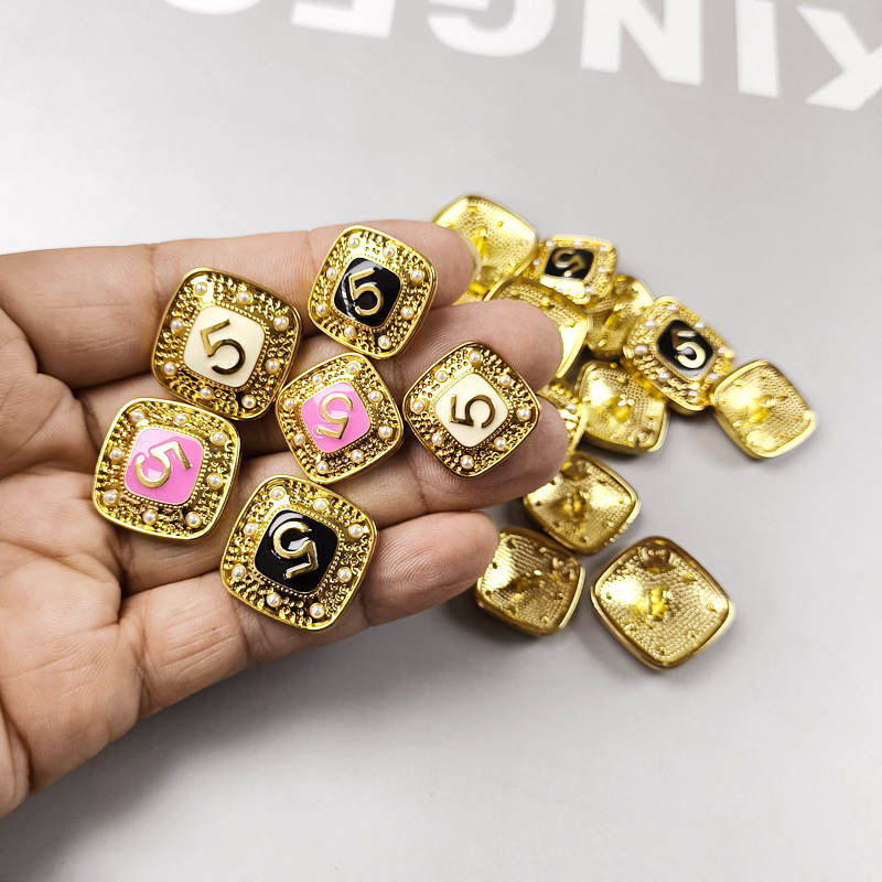 高档金属钮扣锌合金粉油5字扣厂家直销毛呢针织衫小香风百搭饰扣