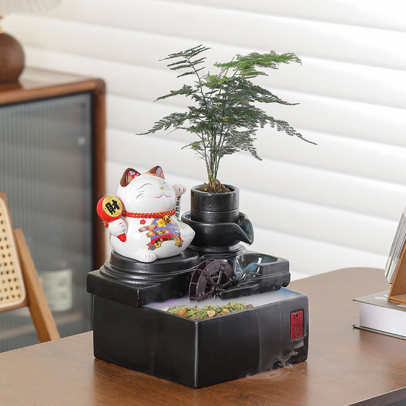 颜色 | 文竹款【招财猫】招财纳福流水摆件 | | 颜色 | 招财纳福流水摆件(配雾化器) |
