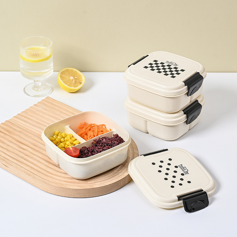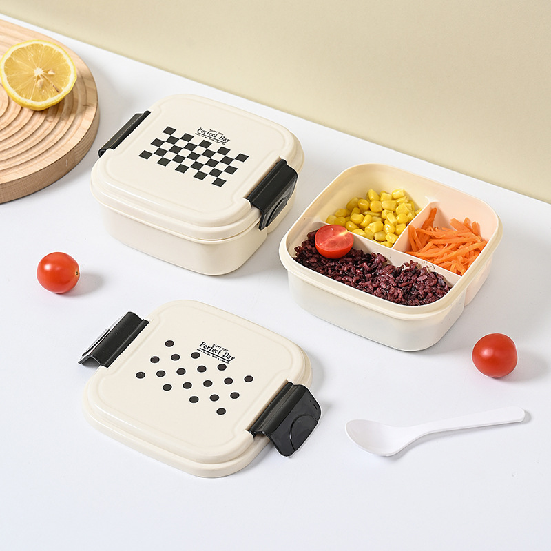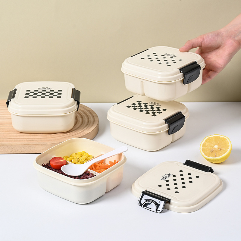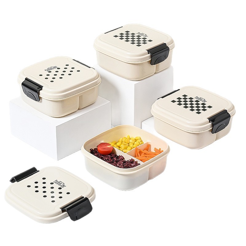 可微波便当盒定制学生分格塑料便携午餐盒奶油风轻食沙拉盒定制