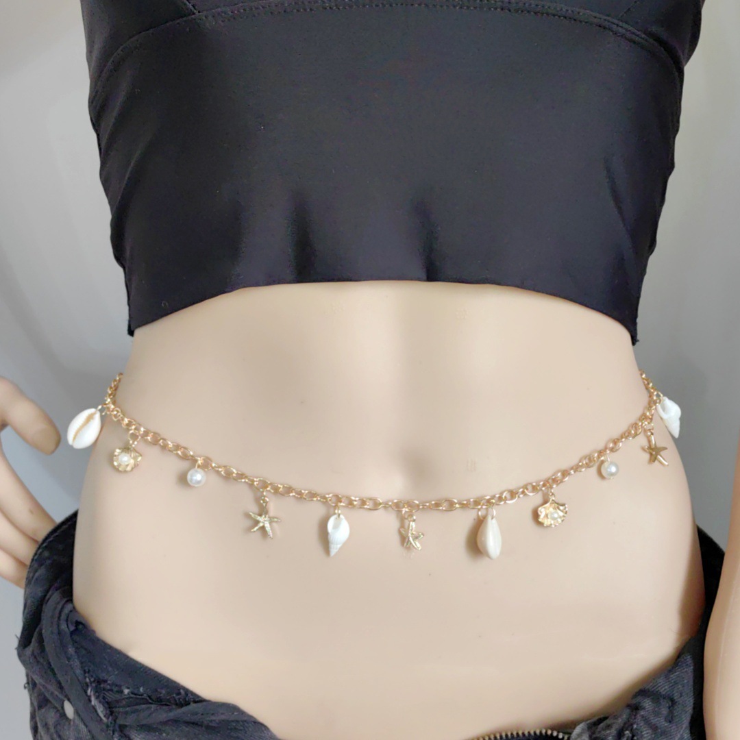 欧美跨境饰品 新款沙滩度假风珍珠链海星贝壳性感腰链 夏季身体链
