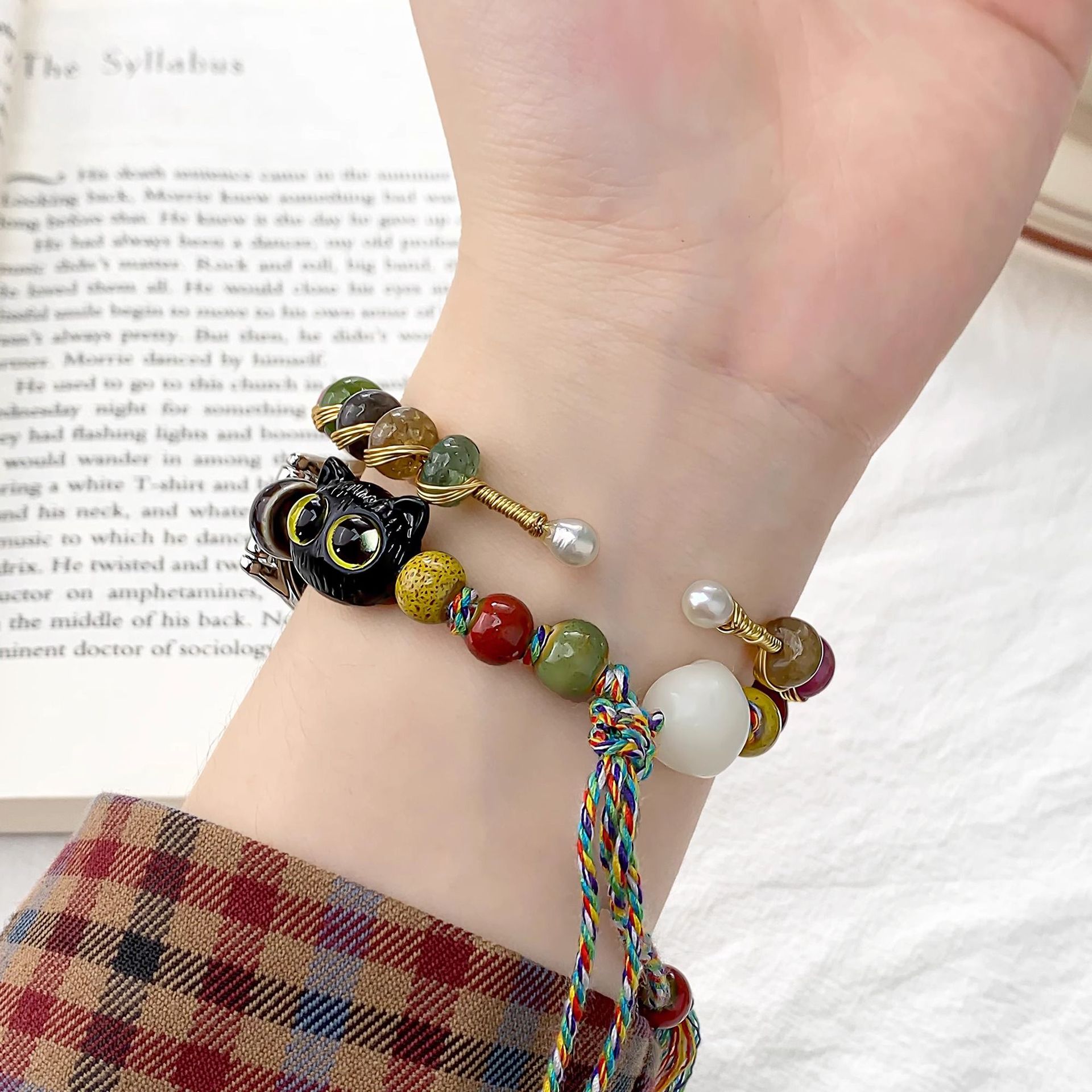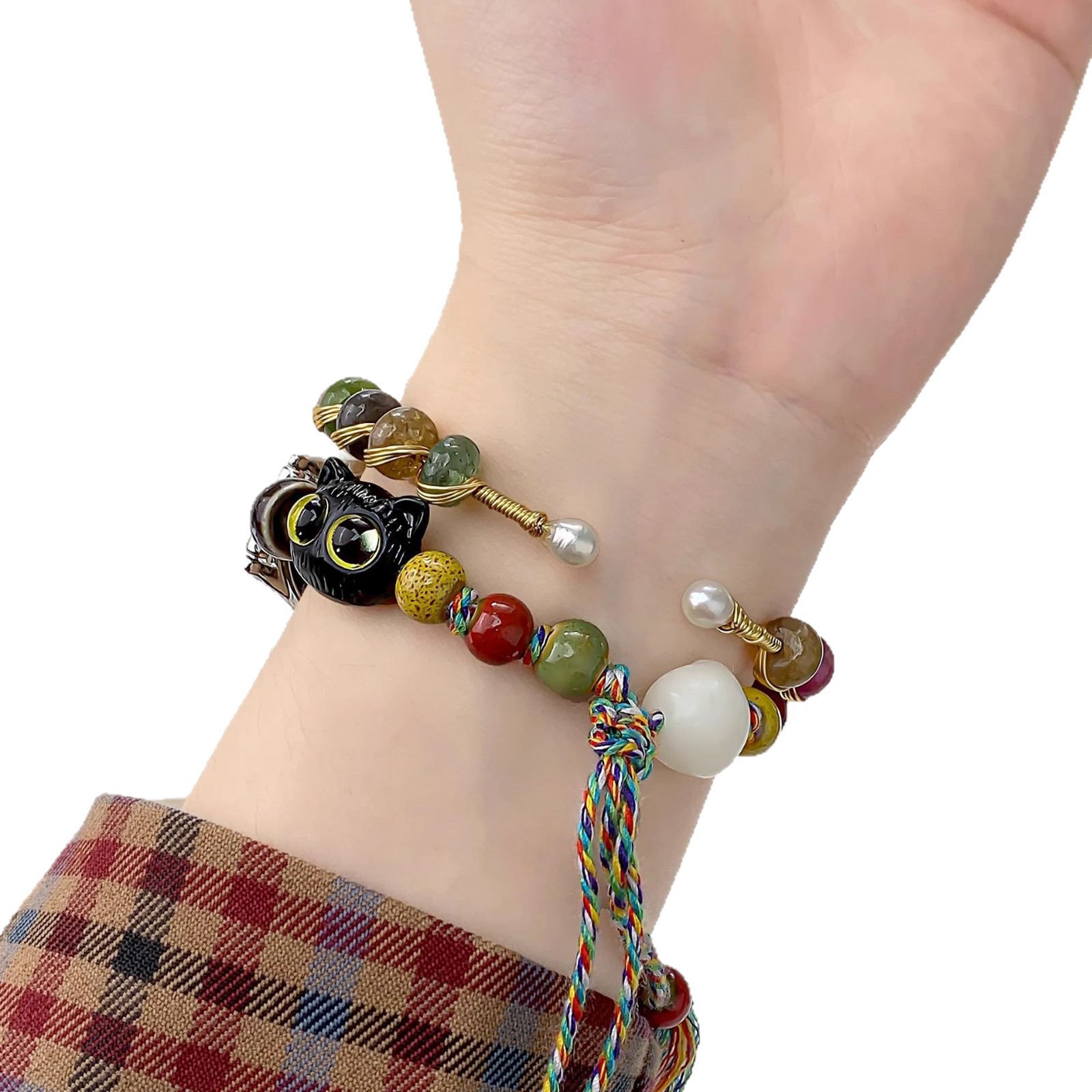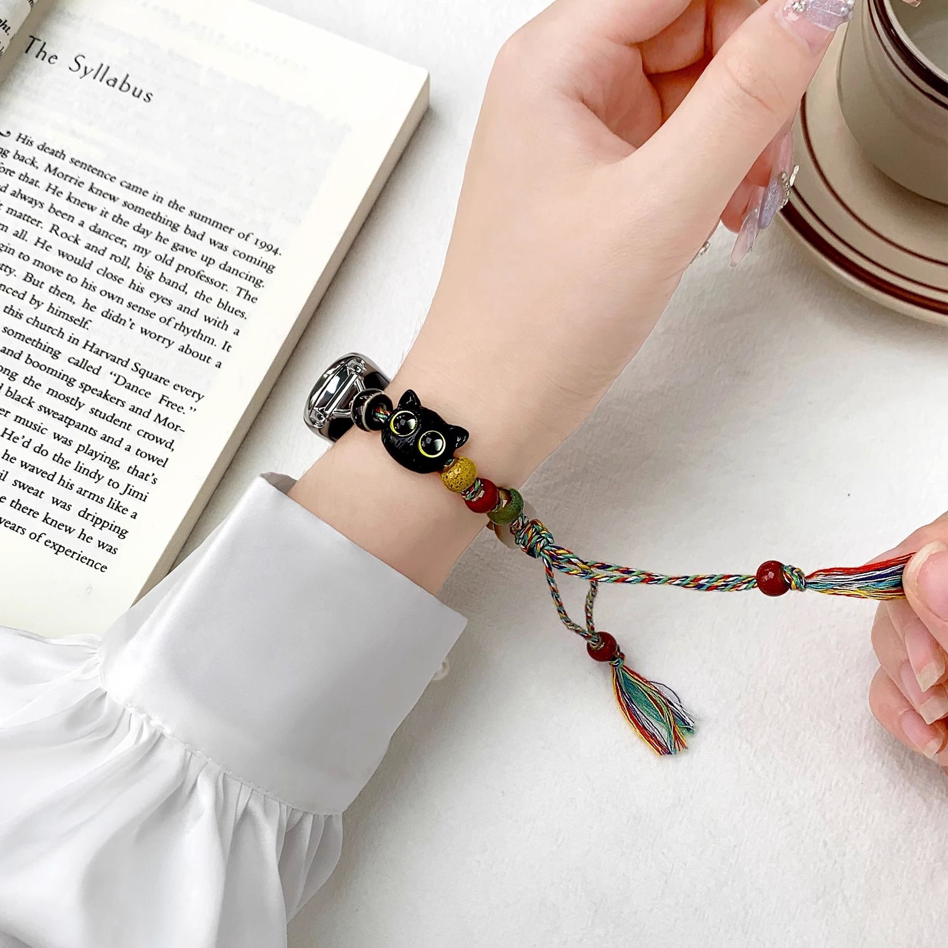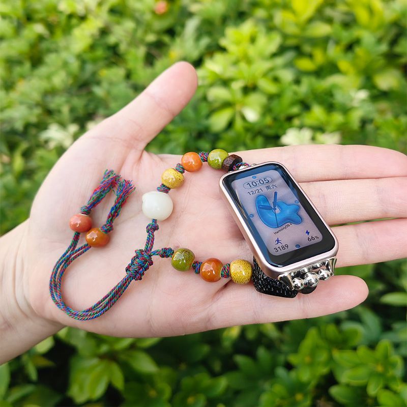 中式ins风陶瓷串珠菩提猫爪表带适用于华为手环8/9腕带支持NFC款