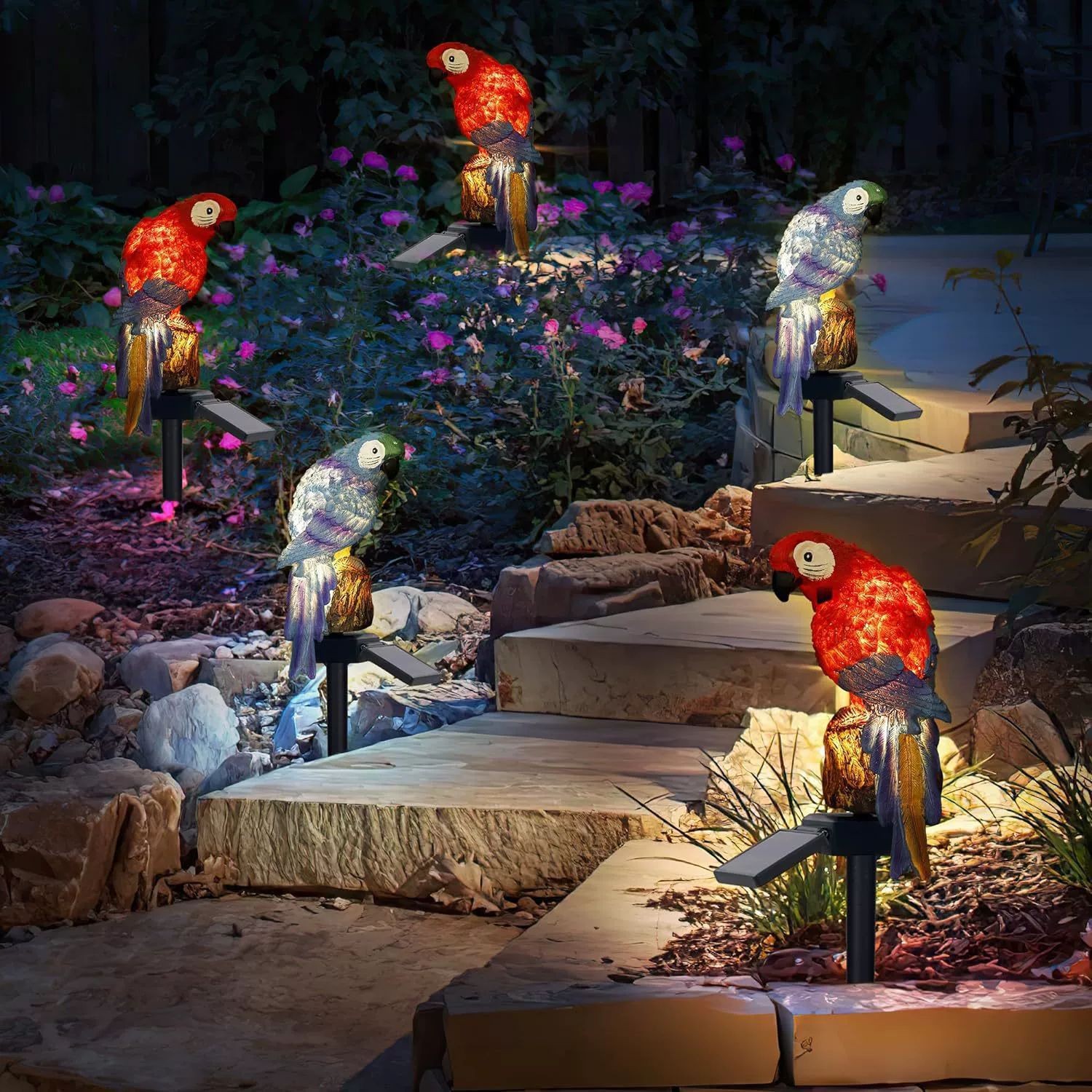色温红色鹦鹉地插灯