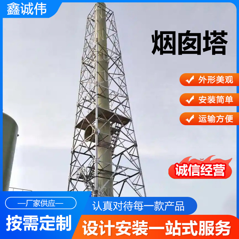 烟囱塔钢结构工厂烟筒塔架玻璃钢烟囱塔供应烟囱塔防晃塔架