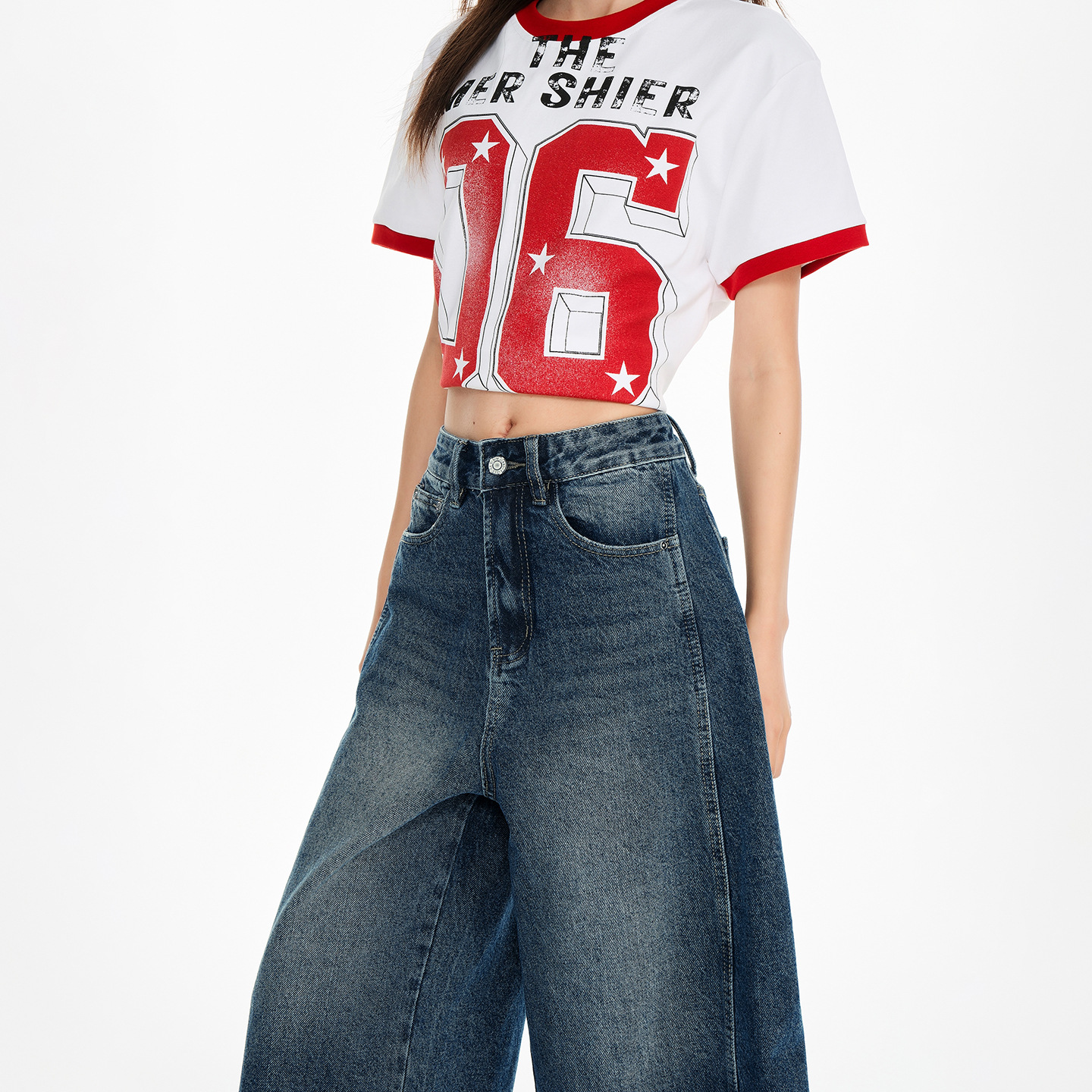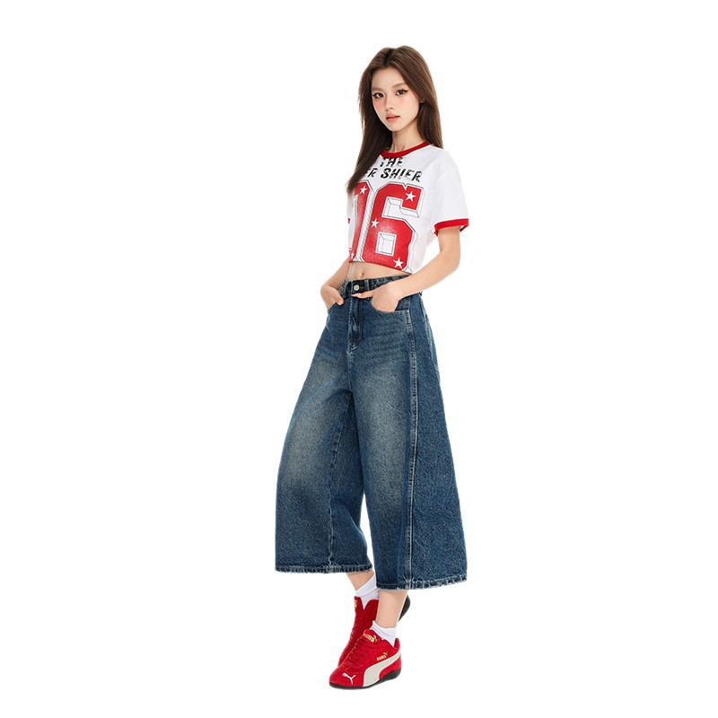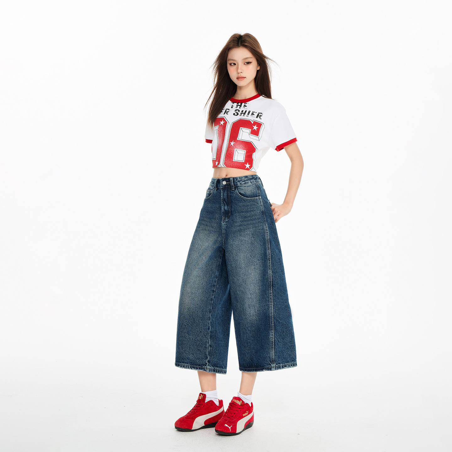 复古水洗怀旧百搭阔腿裤夏季新款高腰显瘦宽松垂坠感七分牛仔裤女