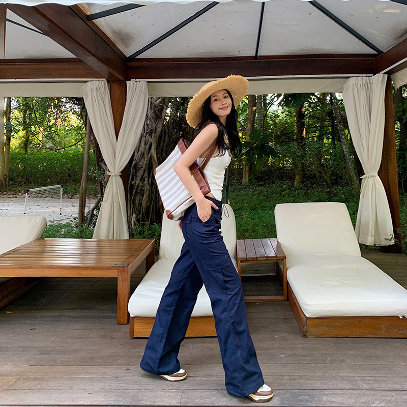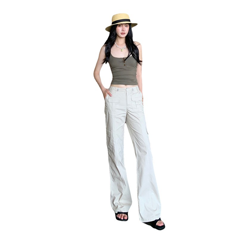 高腰微喇叭牛仔裤女夏季新款显瘦原色马蹄裤小个子直筒设计感长裤