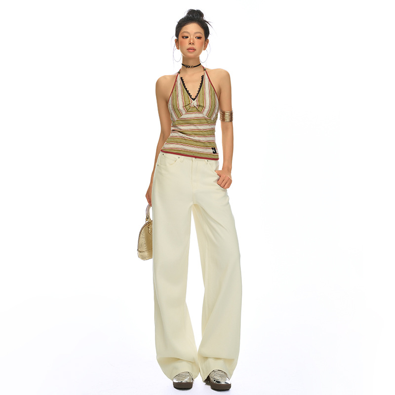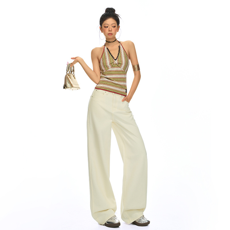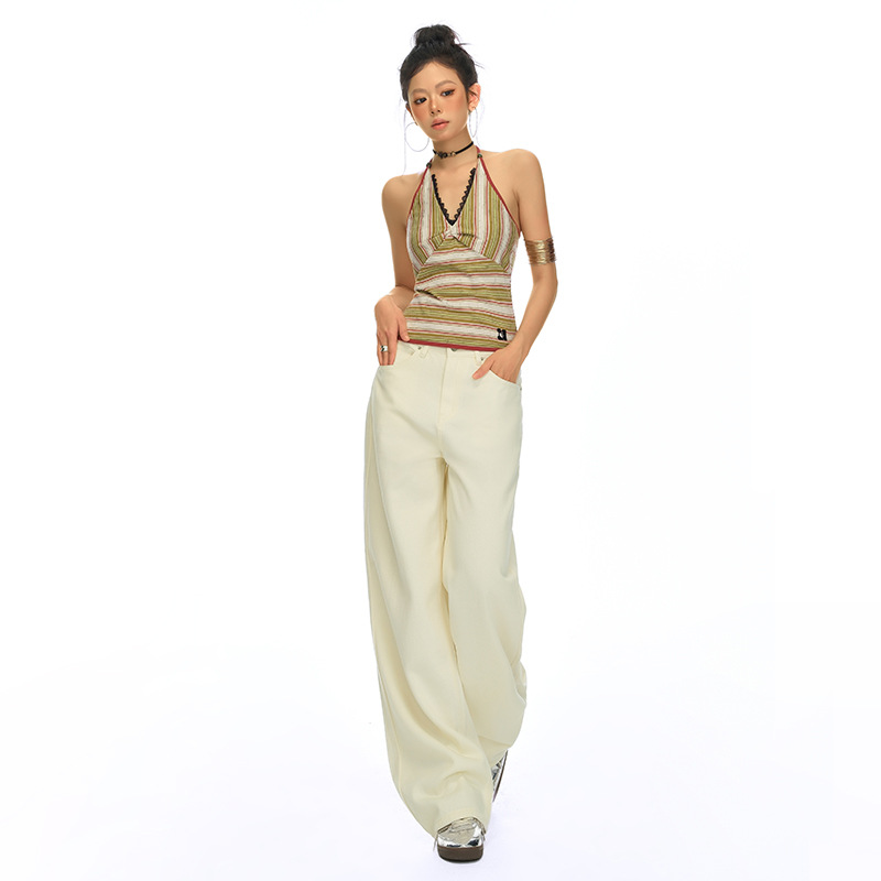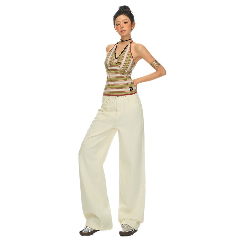 米白色阔腿牛仔裤女夏季薄款2025新款宽松显瘦休闲直筒拖地长裤子