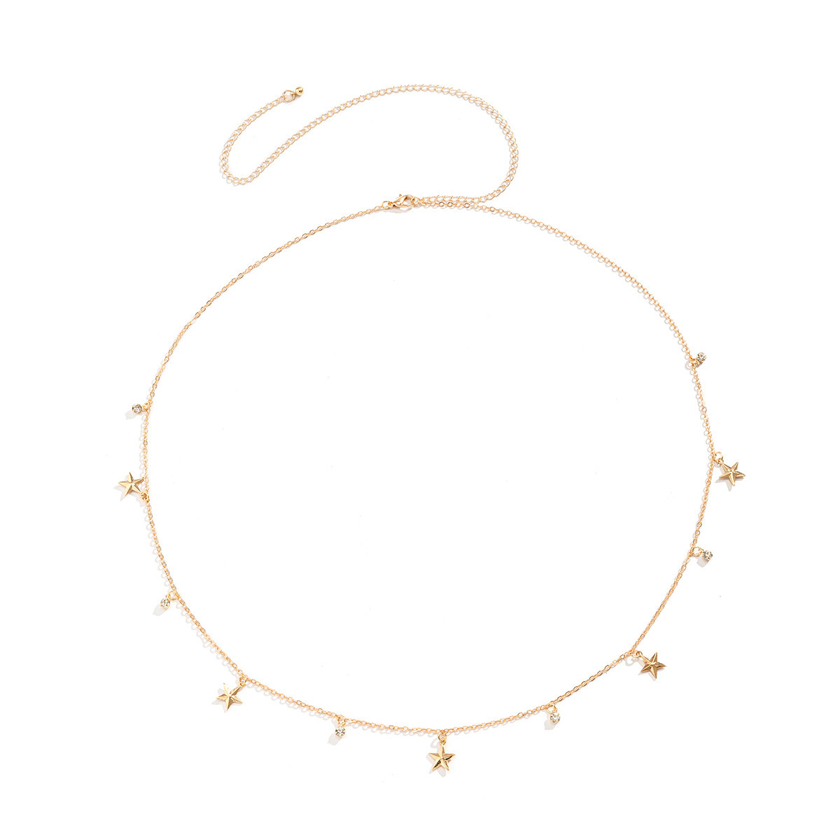 欧美跨境饰品 时尚五角星流苏吊坠沙滩单层性感腰链女 水晶身体链