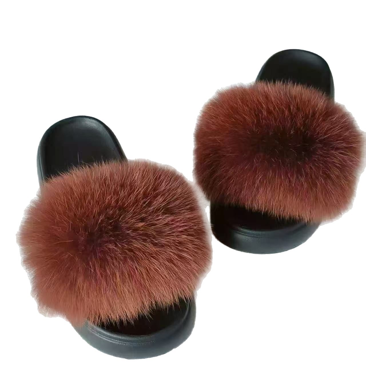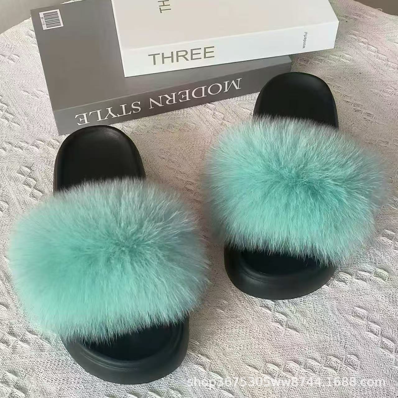 2025新款便携厚底毛毛拖鞋狐狸毛可拆卸女外穿增高一字真皮草毛拖