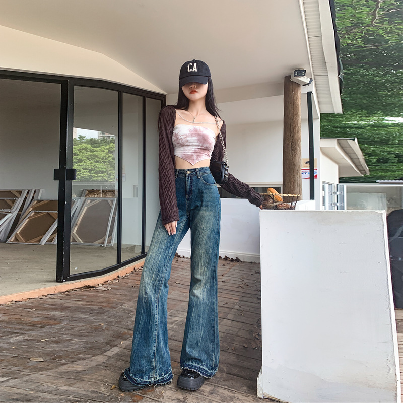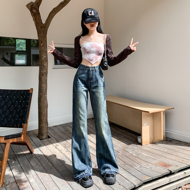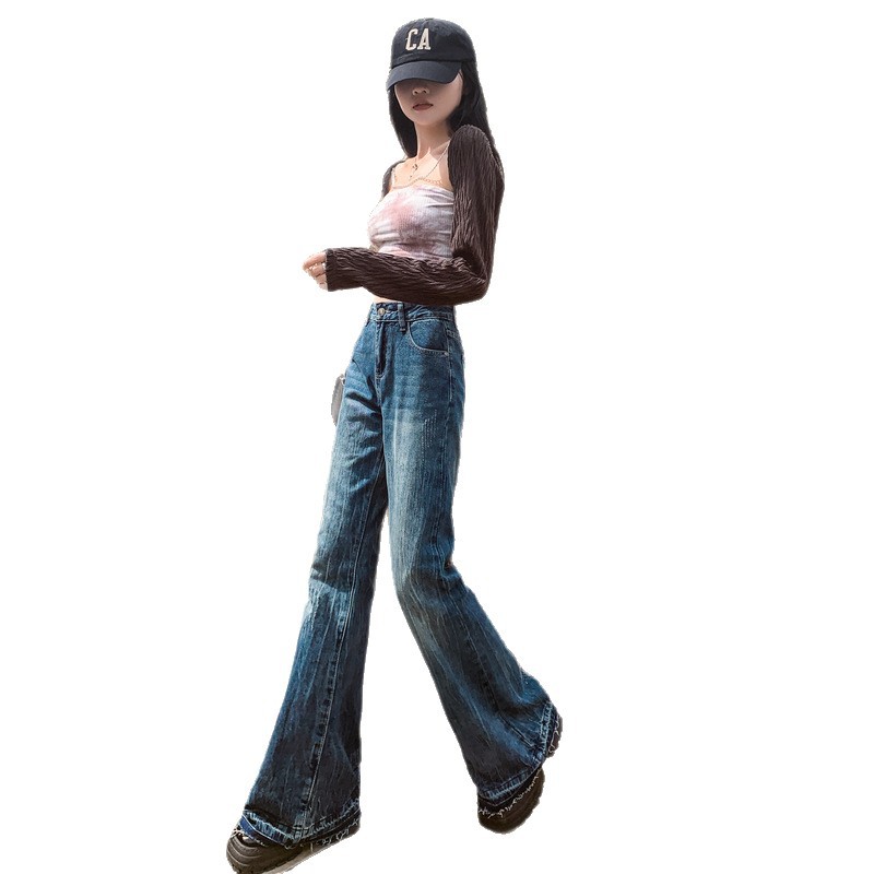 复古微喇牛仔裤女春秋季宽松阔腿裤子2025新款美式高腰显瘦马蹄裤