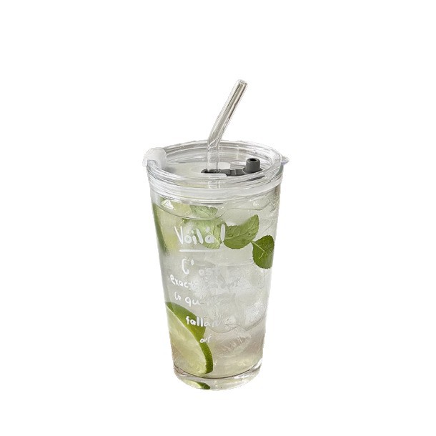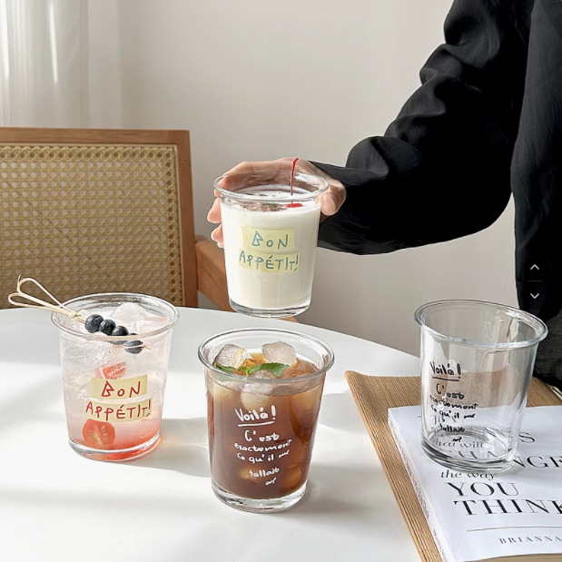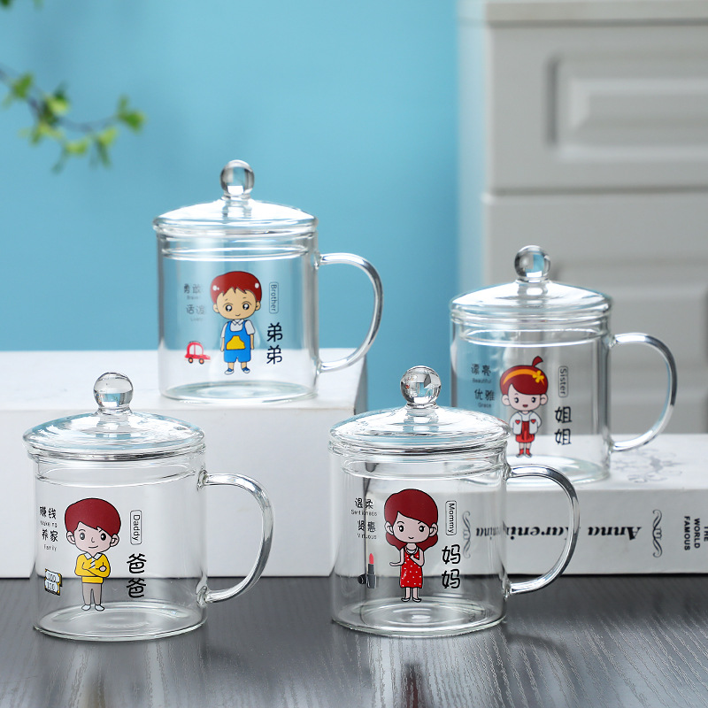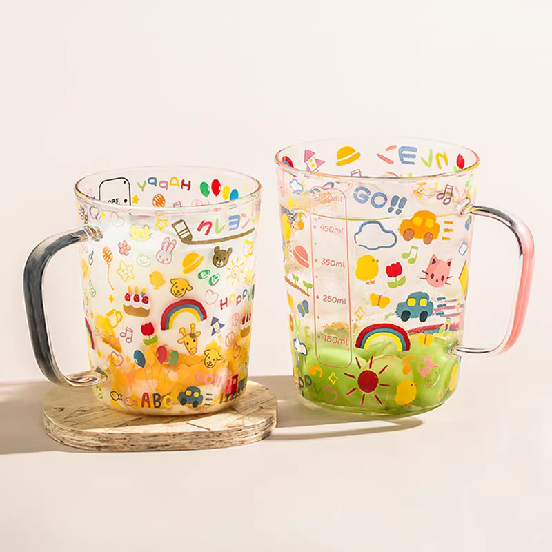 印花玻璃杯ins高颜值高硼硅带把手家用耐高温喝水杯子牛奶果汁杯