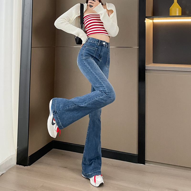 高个子加长牛仔裤春秋季微喇叭裤女高腰显瘦修身拖地裤高街ins潮