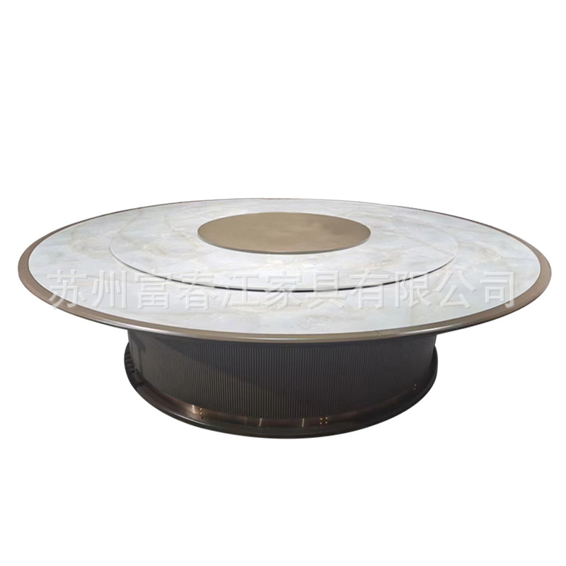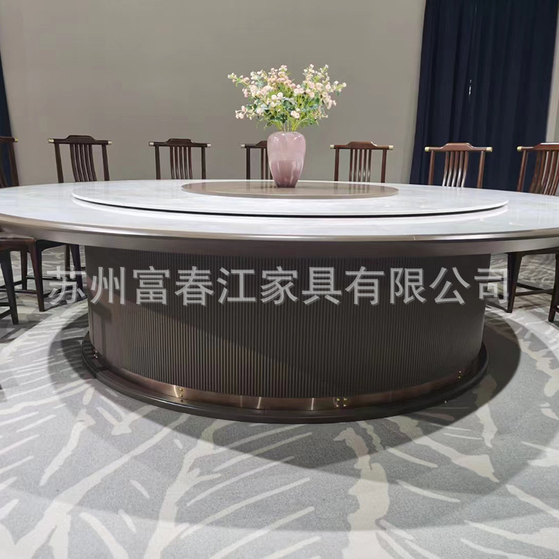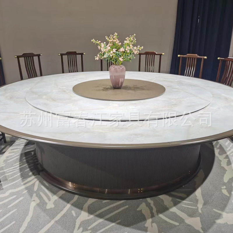 岩板餐桌电动餐桌酒店大圆桌带转盘20人饭店会所餐厅包厢轻奢圆桌