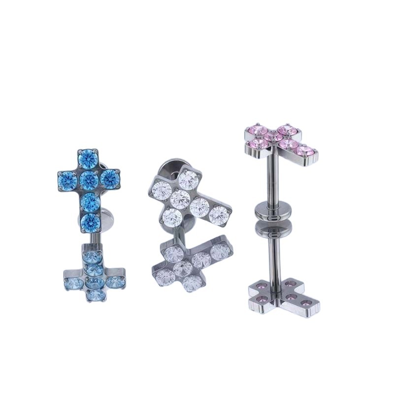 | 种类 | 十字架锆石耳钉 | 处理工艺 | 镶锆石 |