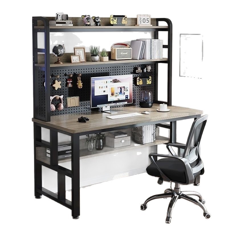 台式电脑桌家用书桌书架一体组合学生写字卧室学习桌子学习桌洞洞