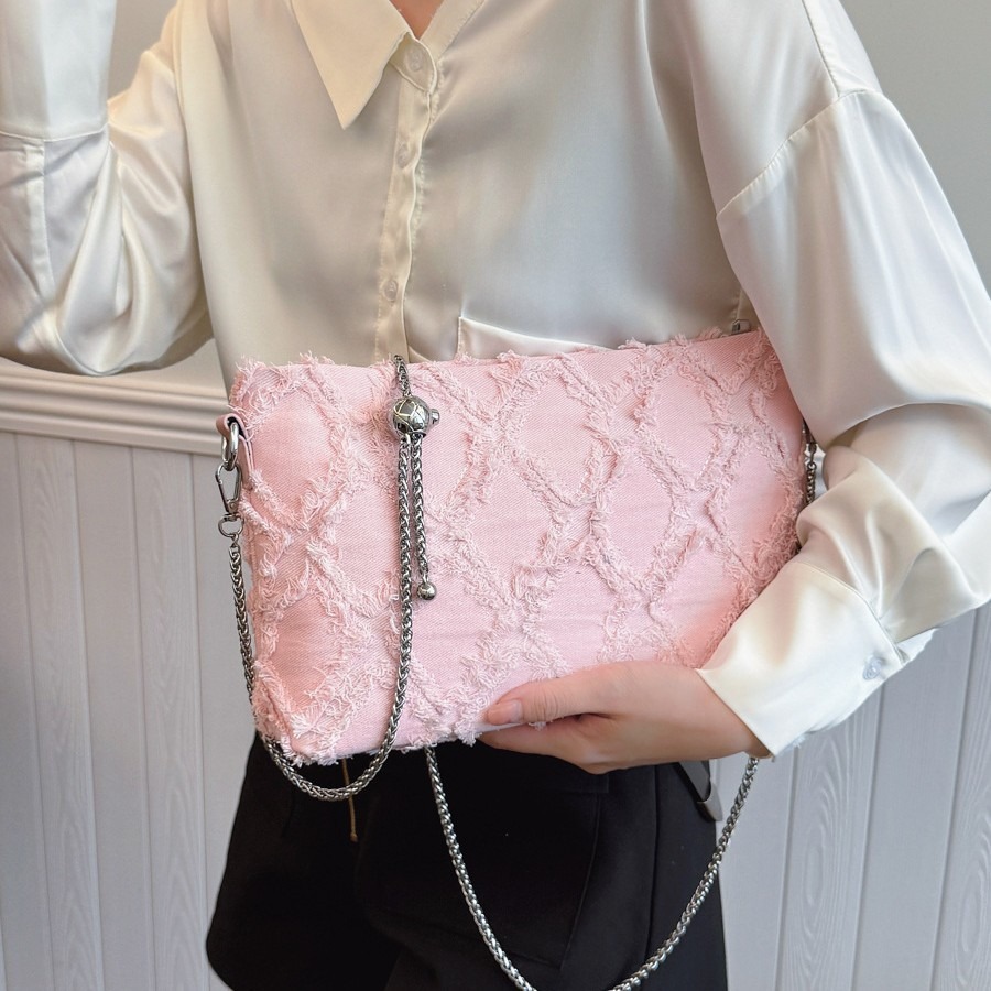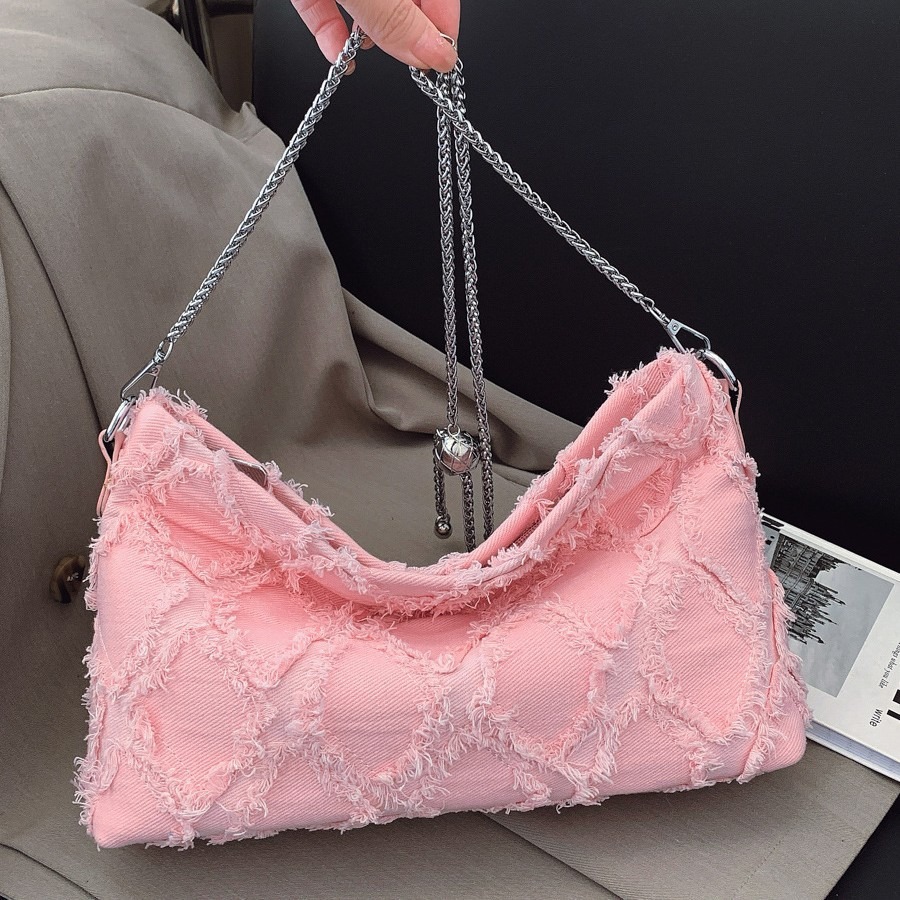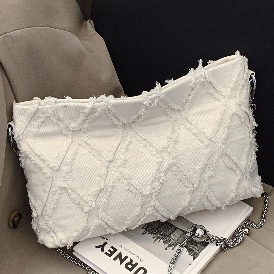 2025新款纯色简约牛仔 拼接 菱格斜跨包小香风手拿包链条单肩女包