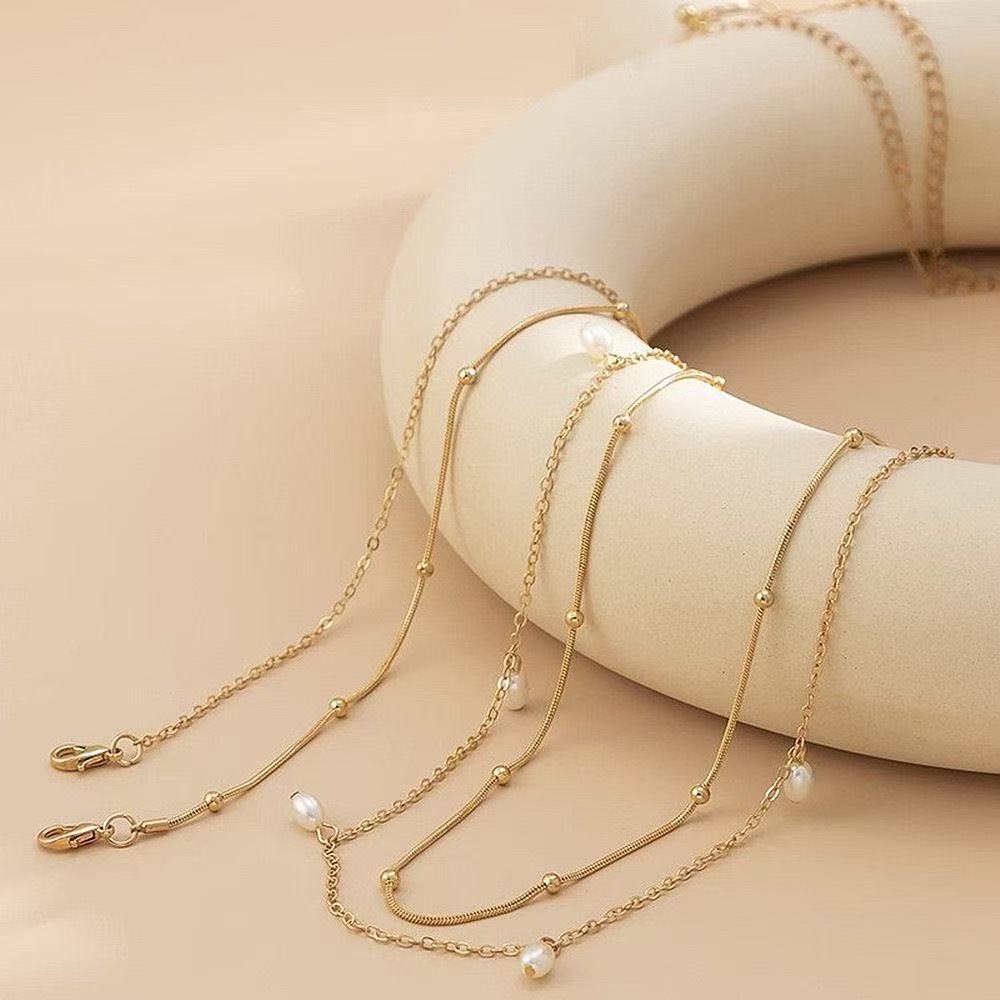 欧美跨境饰品 性感叠戴珍珠交叉流苏腰链女 时尚圆珠双层链身体链