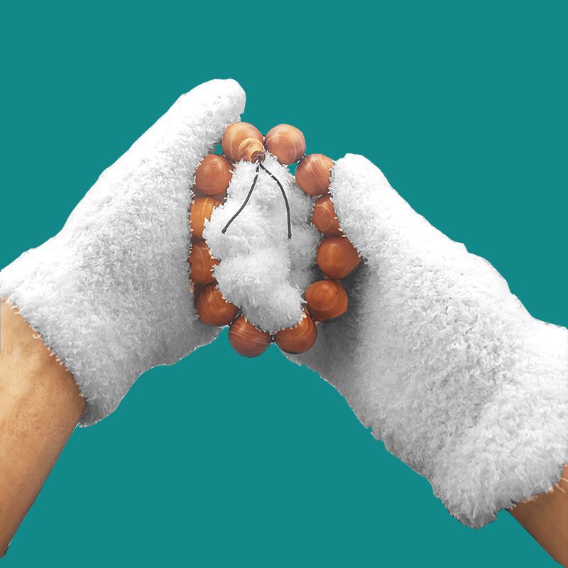 文玩万毛防尘手套珊瑚绒针织手套加厚盘玩盘核桃挂瓷抛光手套批发