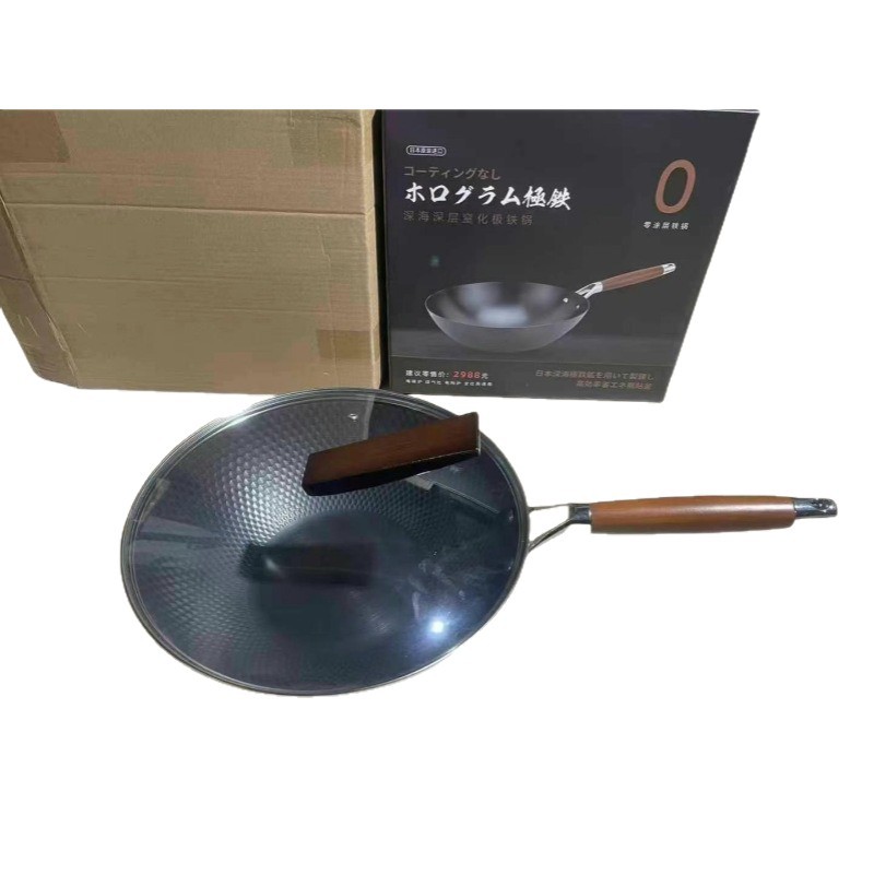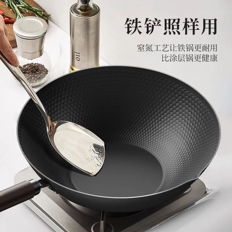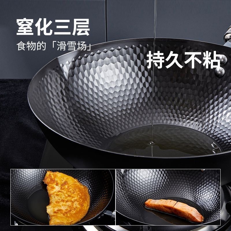 精铁锻打不粘锅家用厨房平底锅炒锅燃气灶轻便无涂层炒菜锅熟铁锅