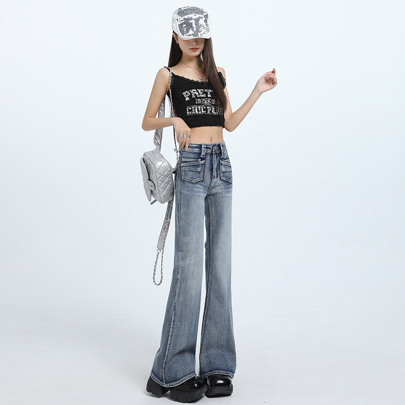 175高个子加长版水洗微喇叭牛仔裤女夏季高腰显瘦修身弹力马蹄裤