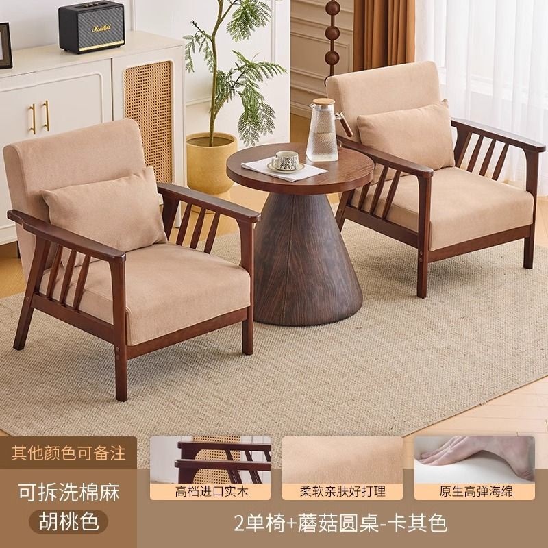 | 颜色 | 胡桃色单椅-深灰【可拆洗棉麻】 | 颜色 | 胡桃色双人-卡其【可拆洗棉麻】 |