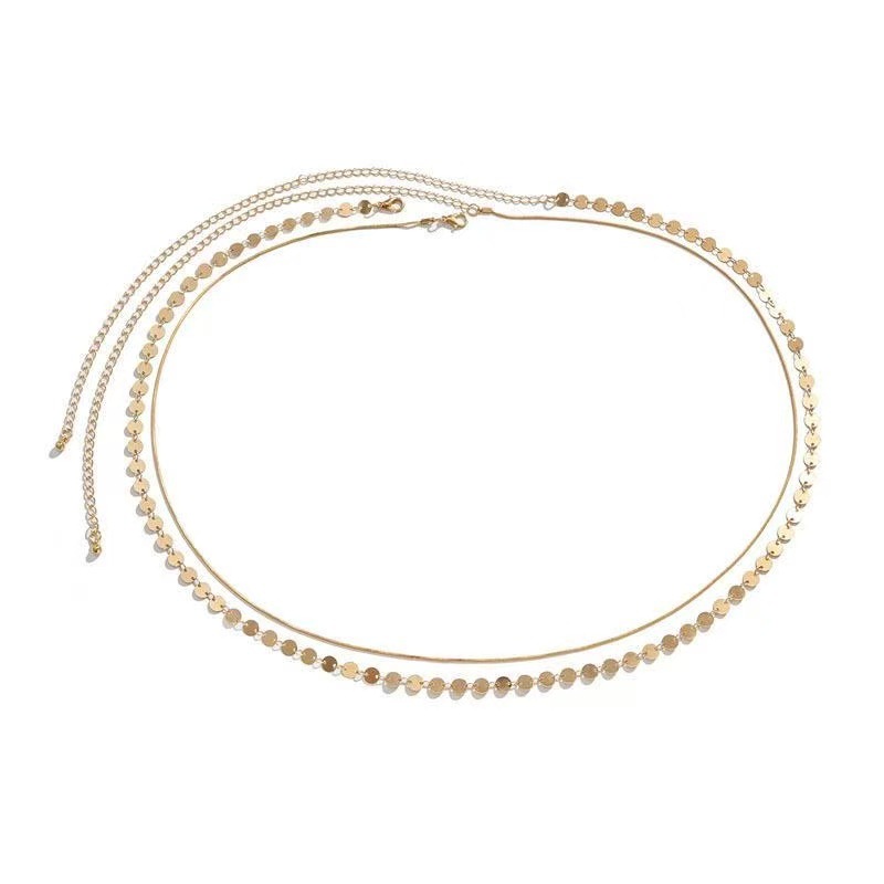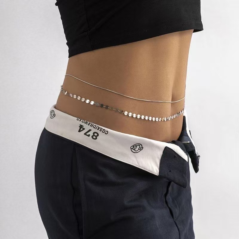 欧美跨境饰品 简约性感金属亮片双层腰链女 时尚辣妹蛇骨链身体链