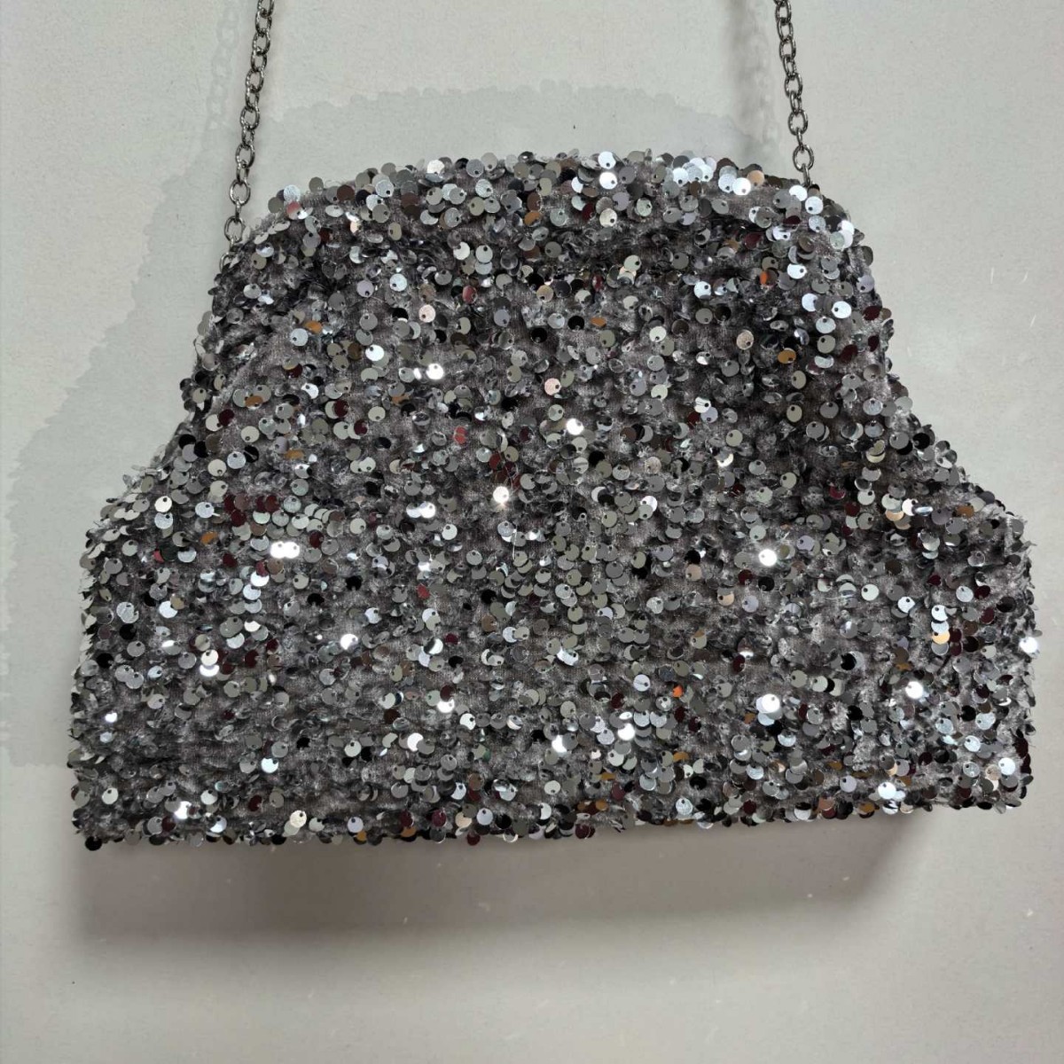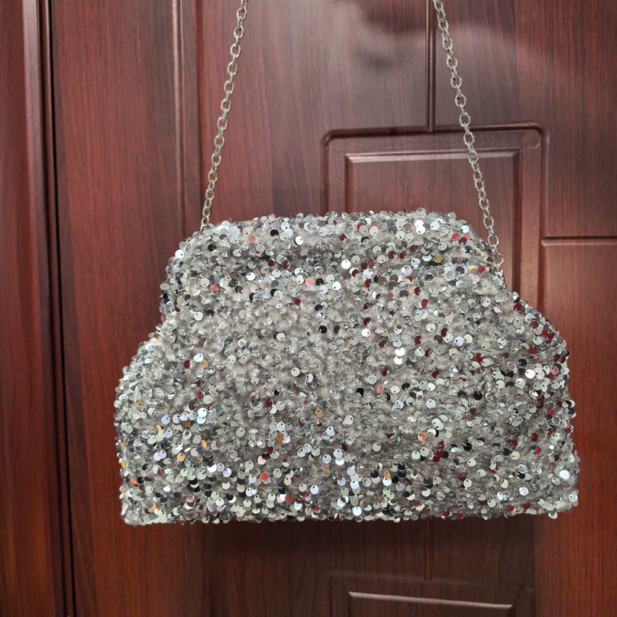 跨境新款时尚银色珠片盒型晚宴包高级单肩包潮流时尚派对大容量