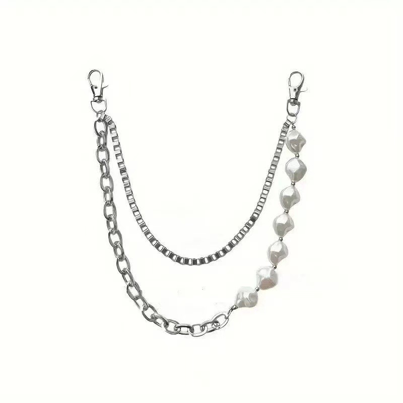 跨境饰品 时尚百搭不规则珍珠拼接裤链配饰 金属链个性朋克裤腰链