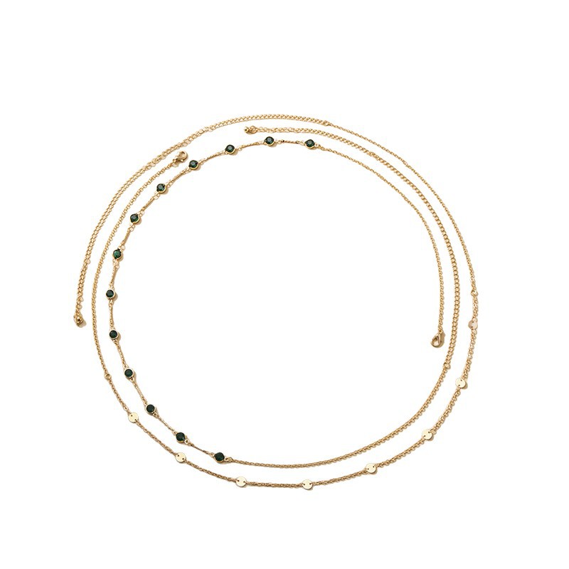 欧美跨境饰品 夏季百搭水晶细链条双层腰链女 简约彩色锆石身体链