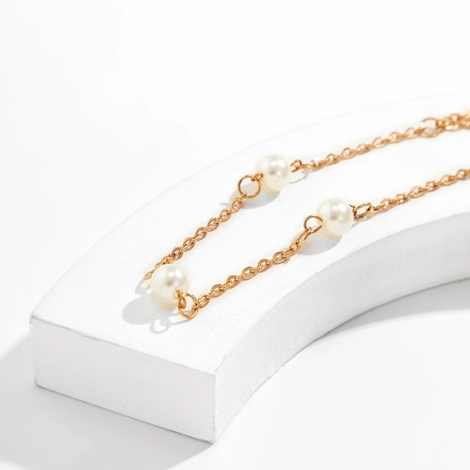 欧美跨境饰品 个性时尚性感仿珍珠女士身体链 简约金属细链条腰链