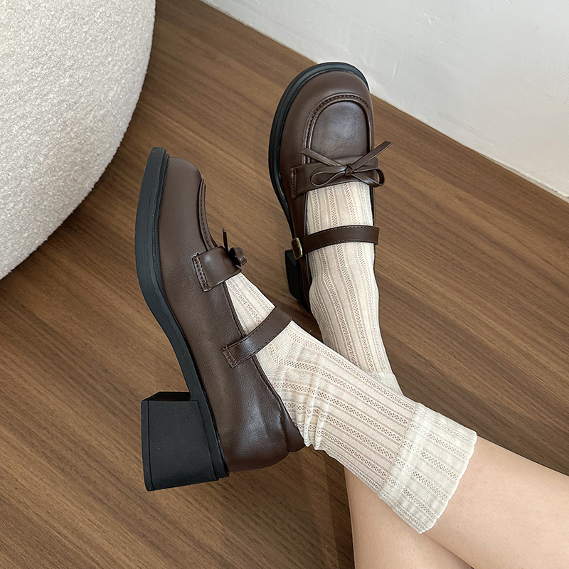 夏季新款法式蝴蝶结一字带配裙子高跟单鞋小皮鞋2025夏浅口玛丽珍