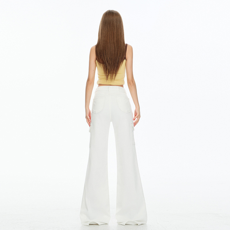 白色喇叭牛仔裤女2025年夏季新款弹力工装低腰不贴腿百搭微喇叭裤