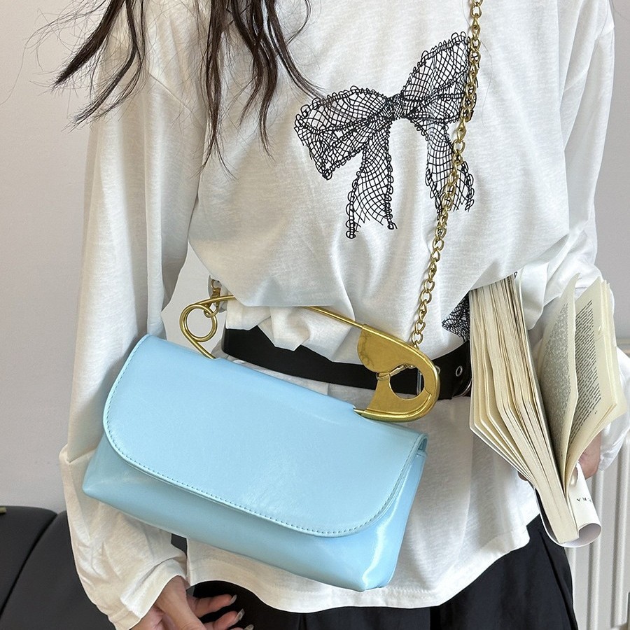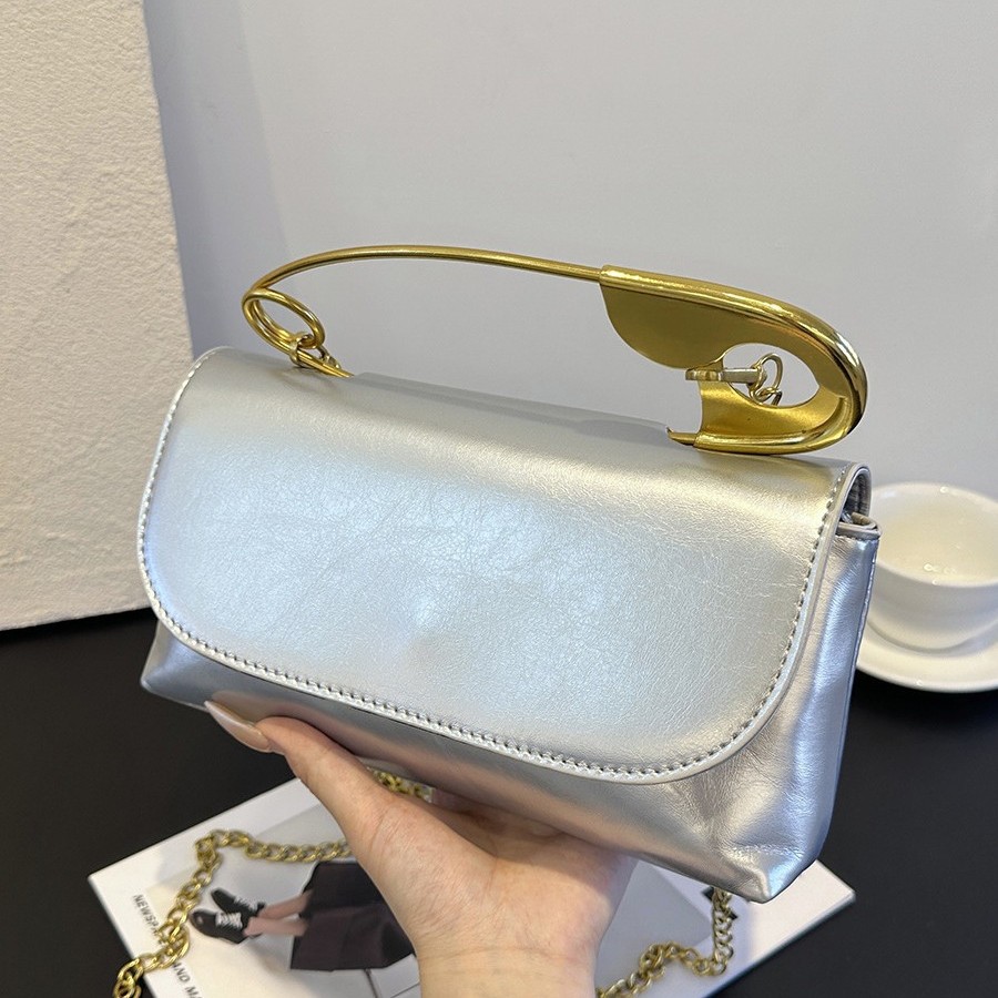 个性曲别针包包2025新款时尚小众手提包女士洋气百搭亮面小方包潮