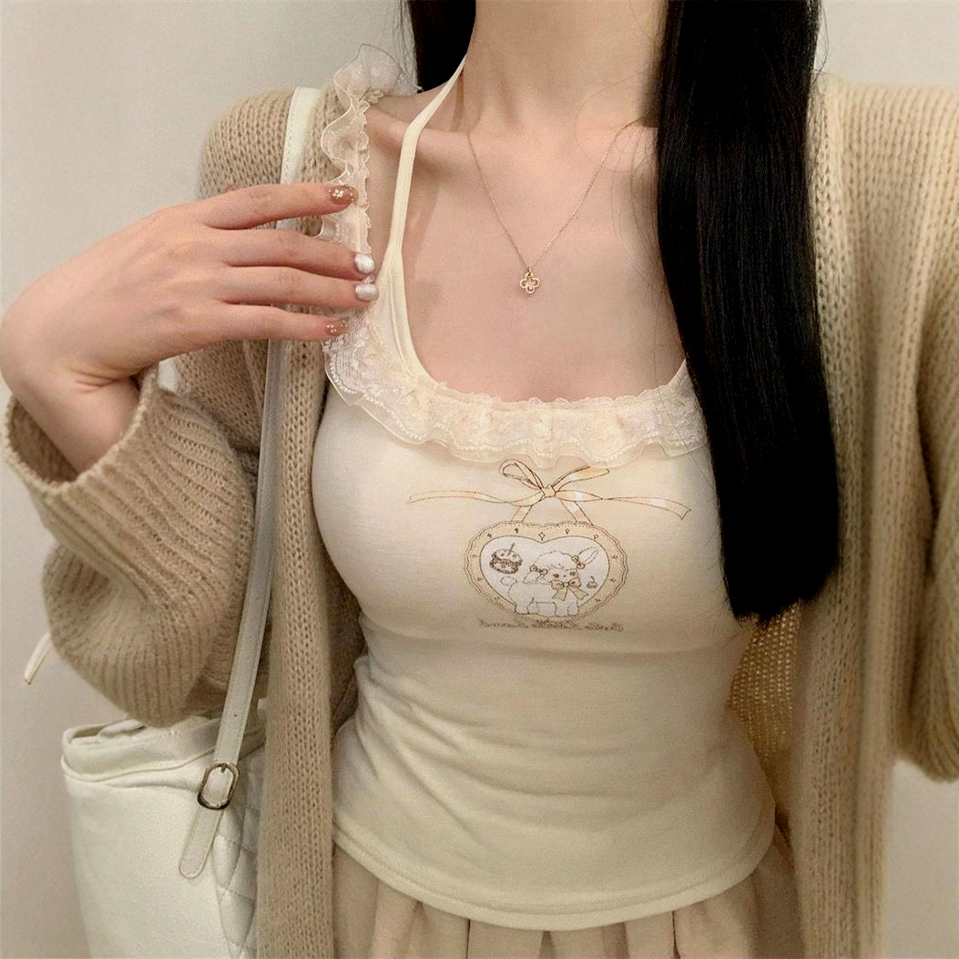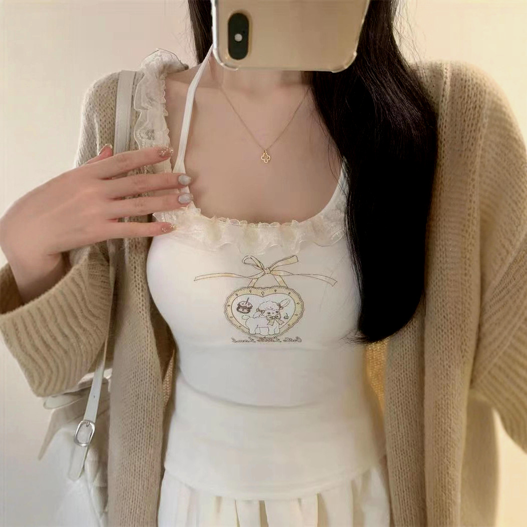 甜心小羊 少女心满满 带胸垫纯欲蕾丝花边吊带背心女打底内搭上衣