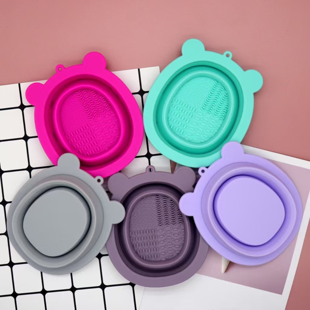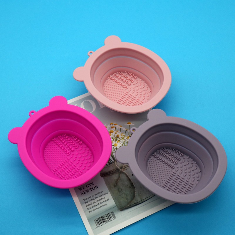 工厂热销硅胶折叠碗小熊清洁碗化妆刷美妆面膜碗工具专用便携批发