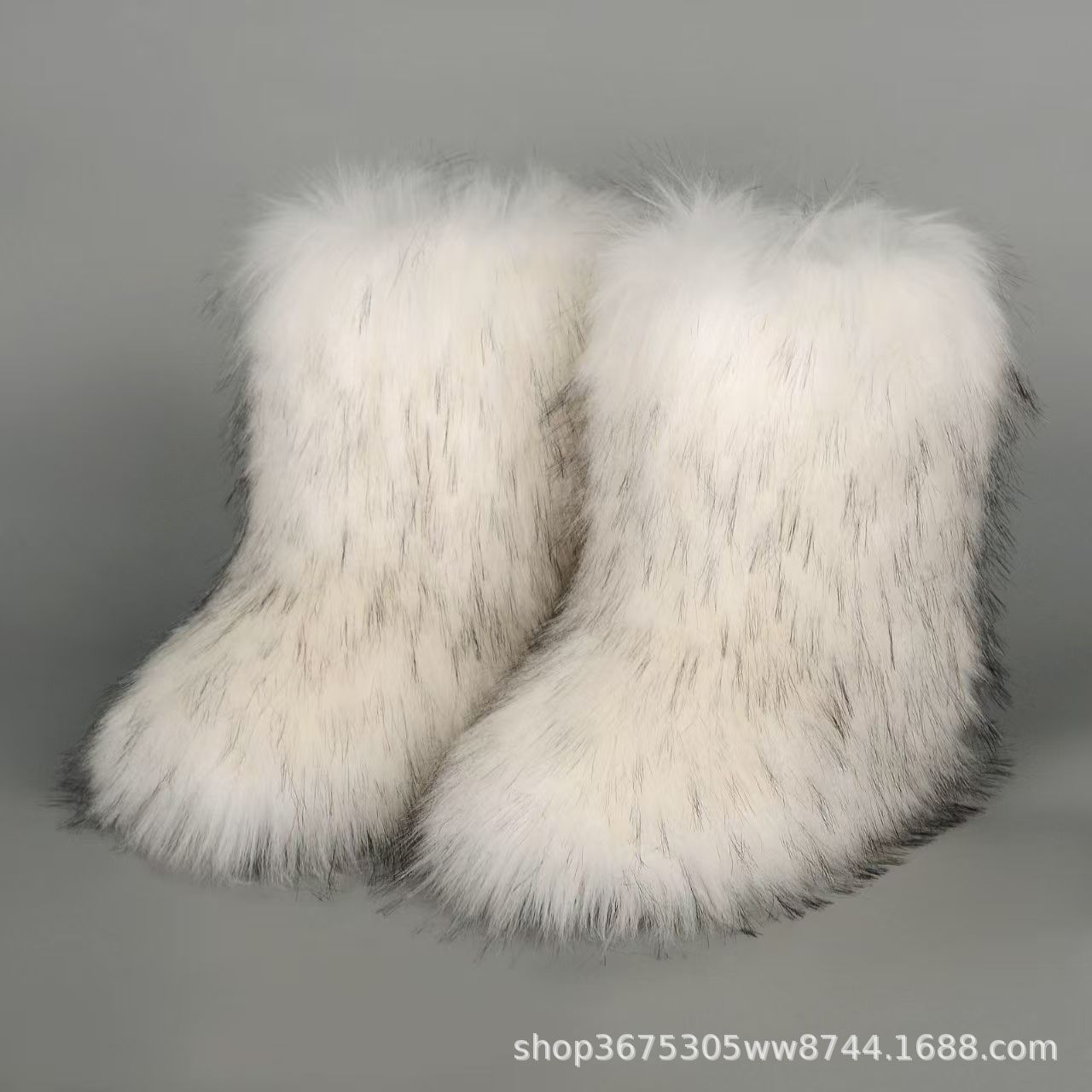 跨境欧美皮草雪地靴子平跟中帮仿貉子狐狸毛冬季保暖中筒女士鞋