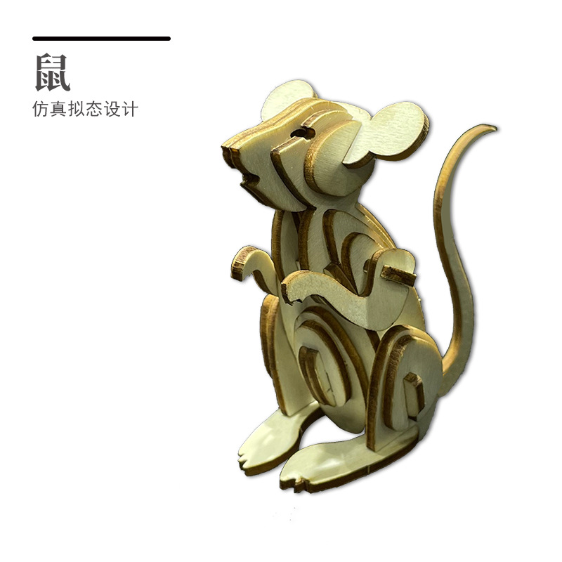 动物生肖模型儿童木制3d立体拼图学生手工课制作材料地摊玩具批发