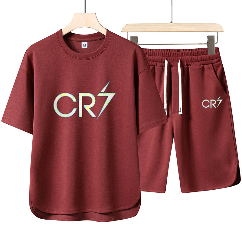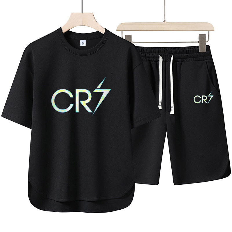 夏季新款休闲运动嘻哈分印花套装男大码短袖t恤短裤潮流两件套
