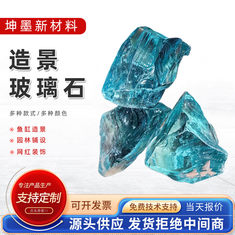 景观装饰石笼墙造景用雕刻不规则卵石蓝色琉璃石玻璃块彩色玻璃石