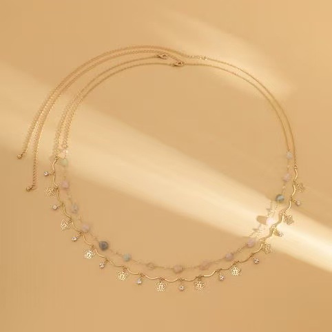 欧美跨境饰品 性感双层镂空蝴蝶水钻流苏碎石腰链 时尚百搭身体链