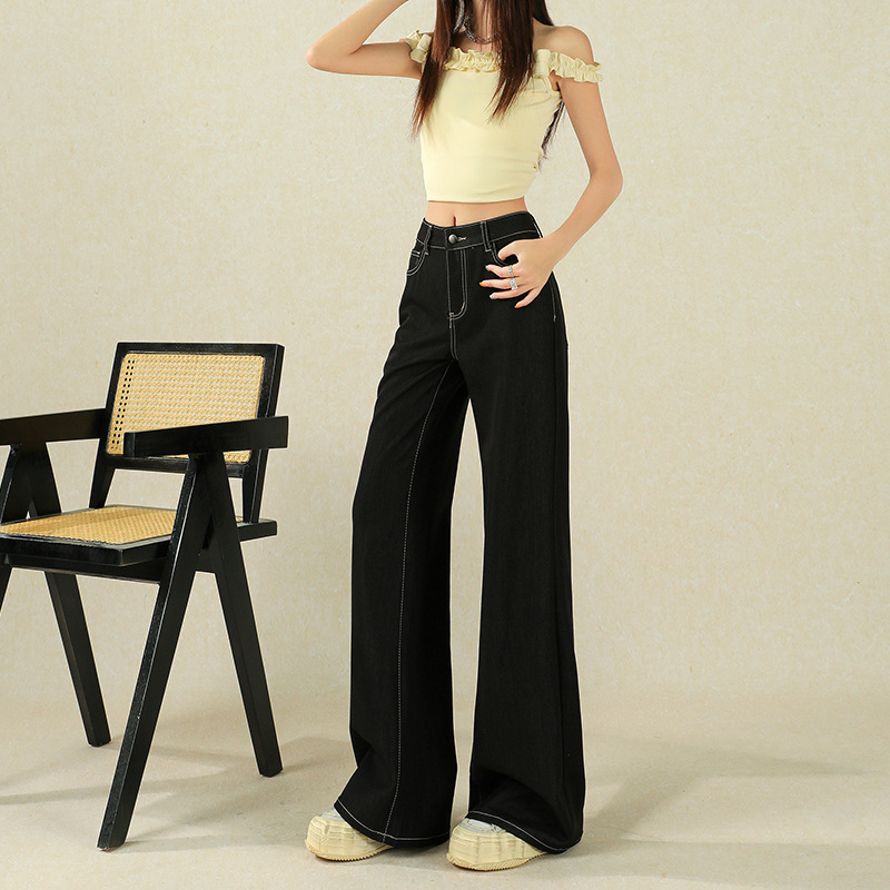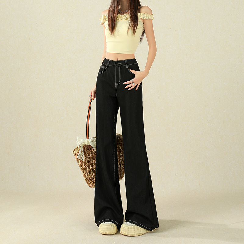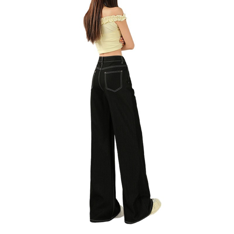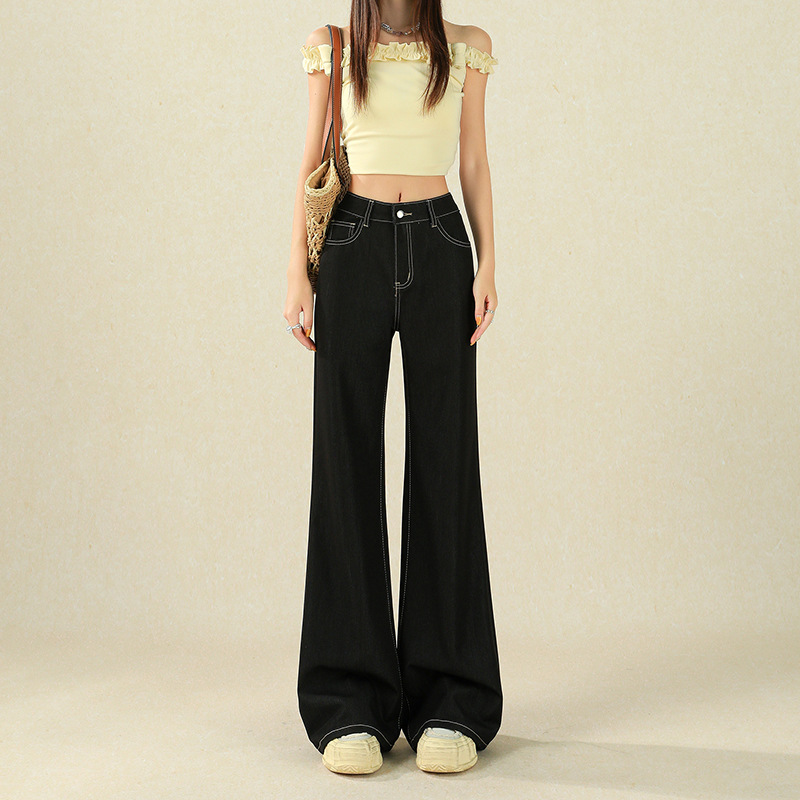 美式辣妹中腰水洗磨破微喇叭牛仔裤女春秋款慵懒松弛感显瘦长裤子