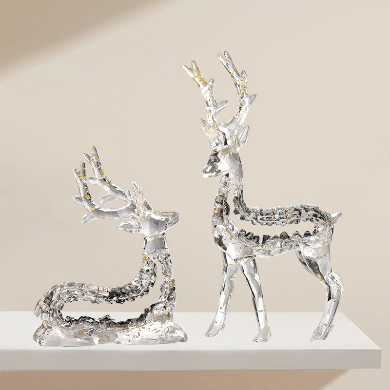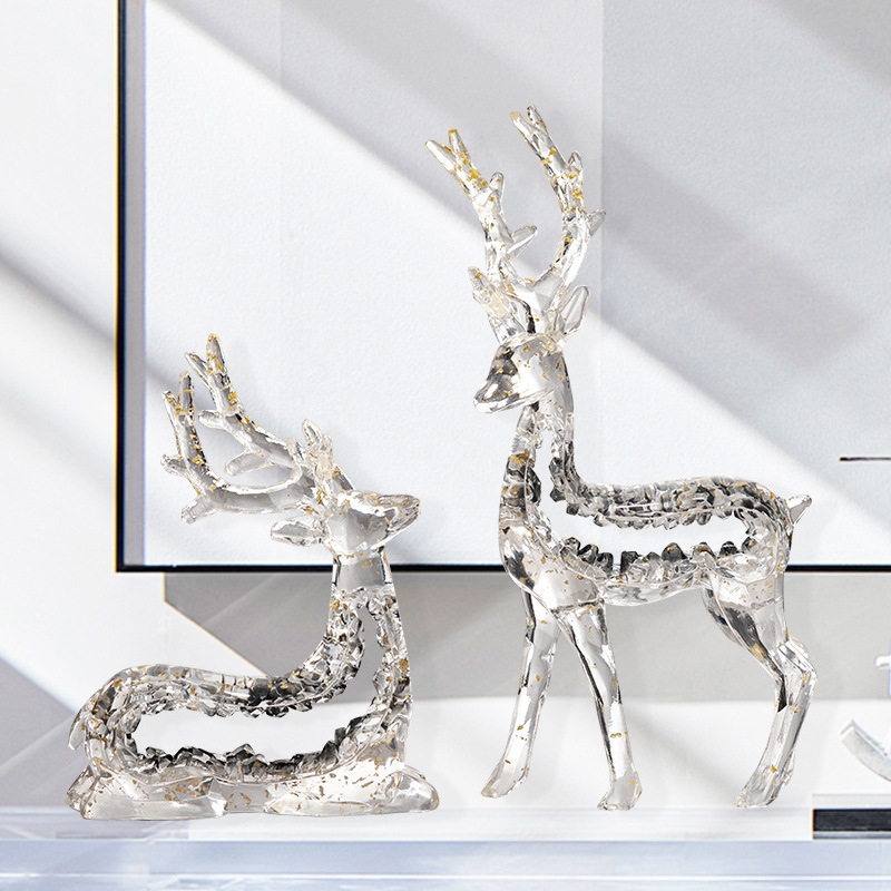 创意家居招财鹿摆件一对轻奢高档玄关客厅酒柜电视柜办公室装饰品