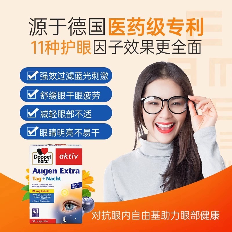 德国蓝莓叶黄素日夜护眼胶囊片专利成人保眼睛丸30粒