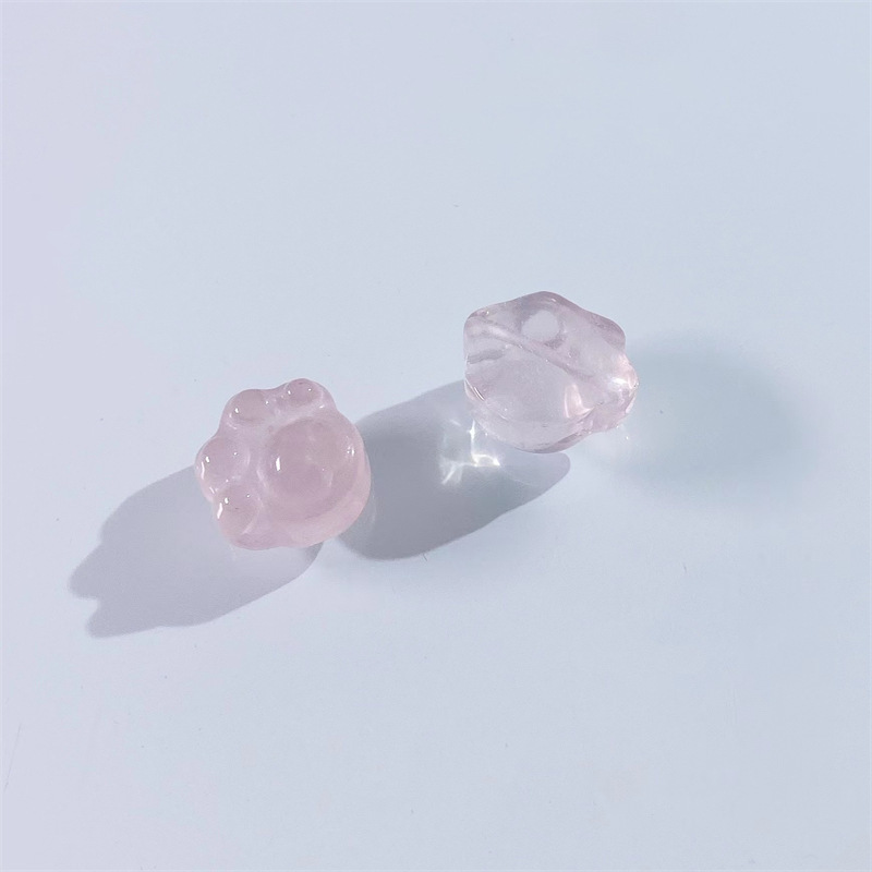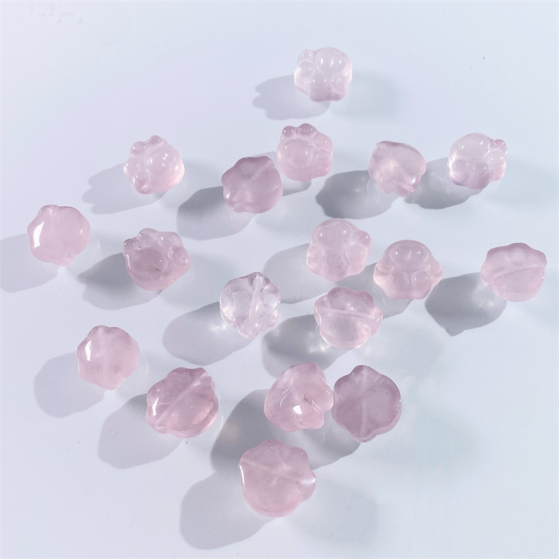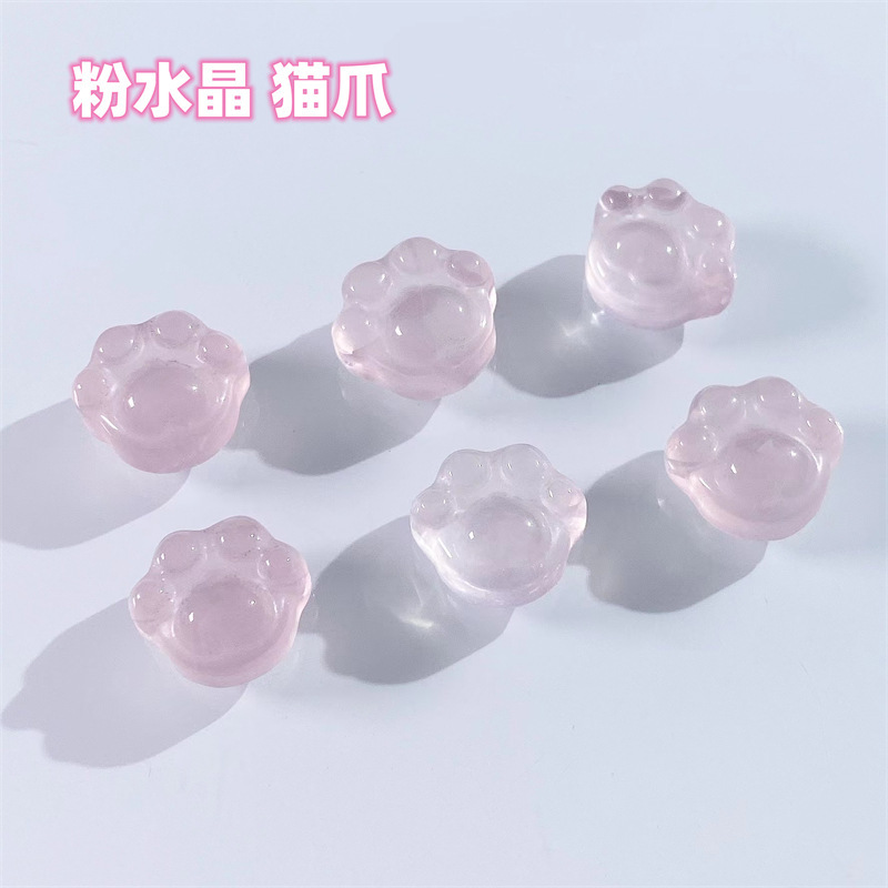 天然粉水晶猫爪串饰可爱百搭配饰手工DIY手链项链编绳粉晶雕刻件