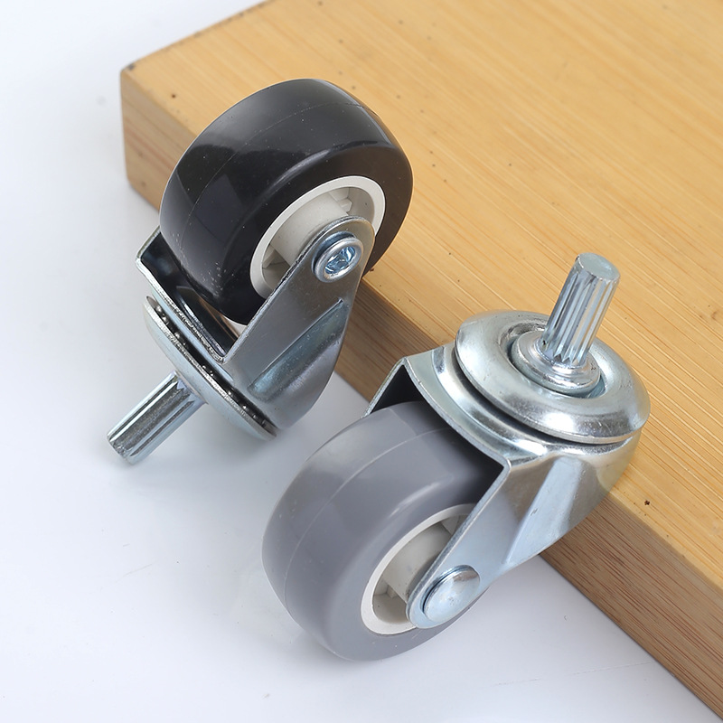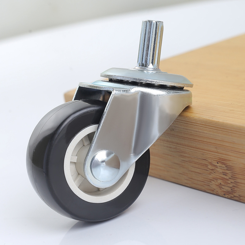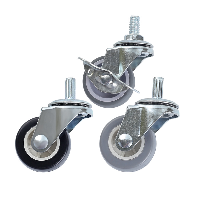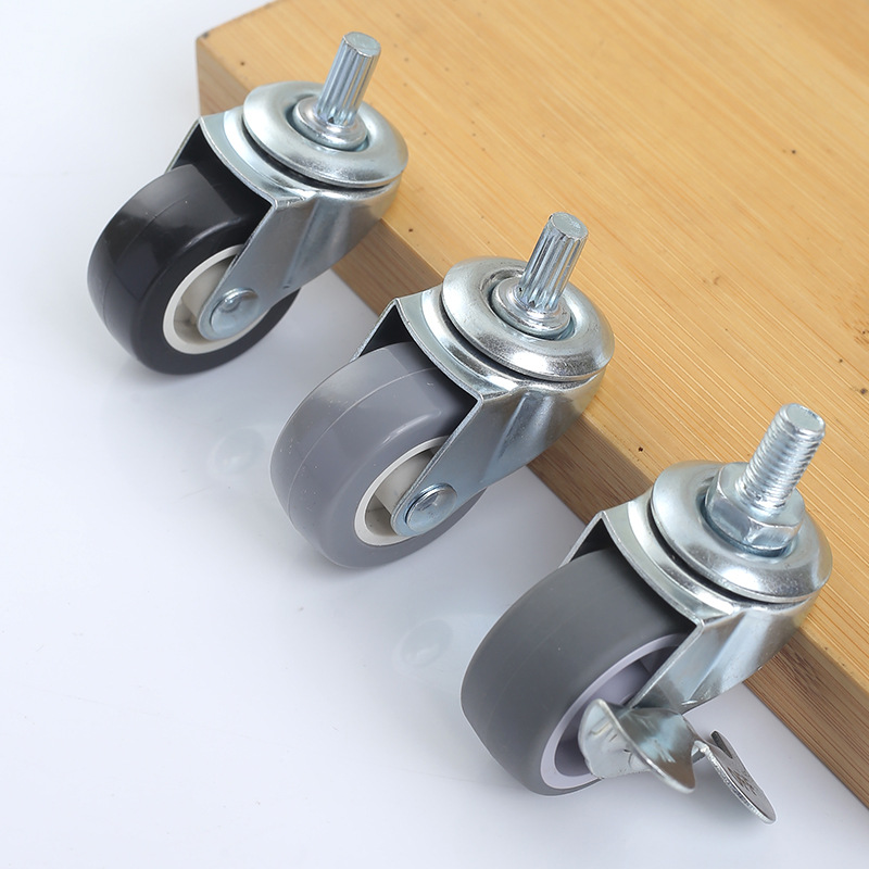 TPR静音耐磨脚轮1.5寸万向轮刹车轮镀兰锌支架插杆丝杆式轻型脚轮