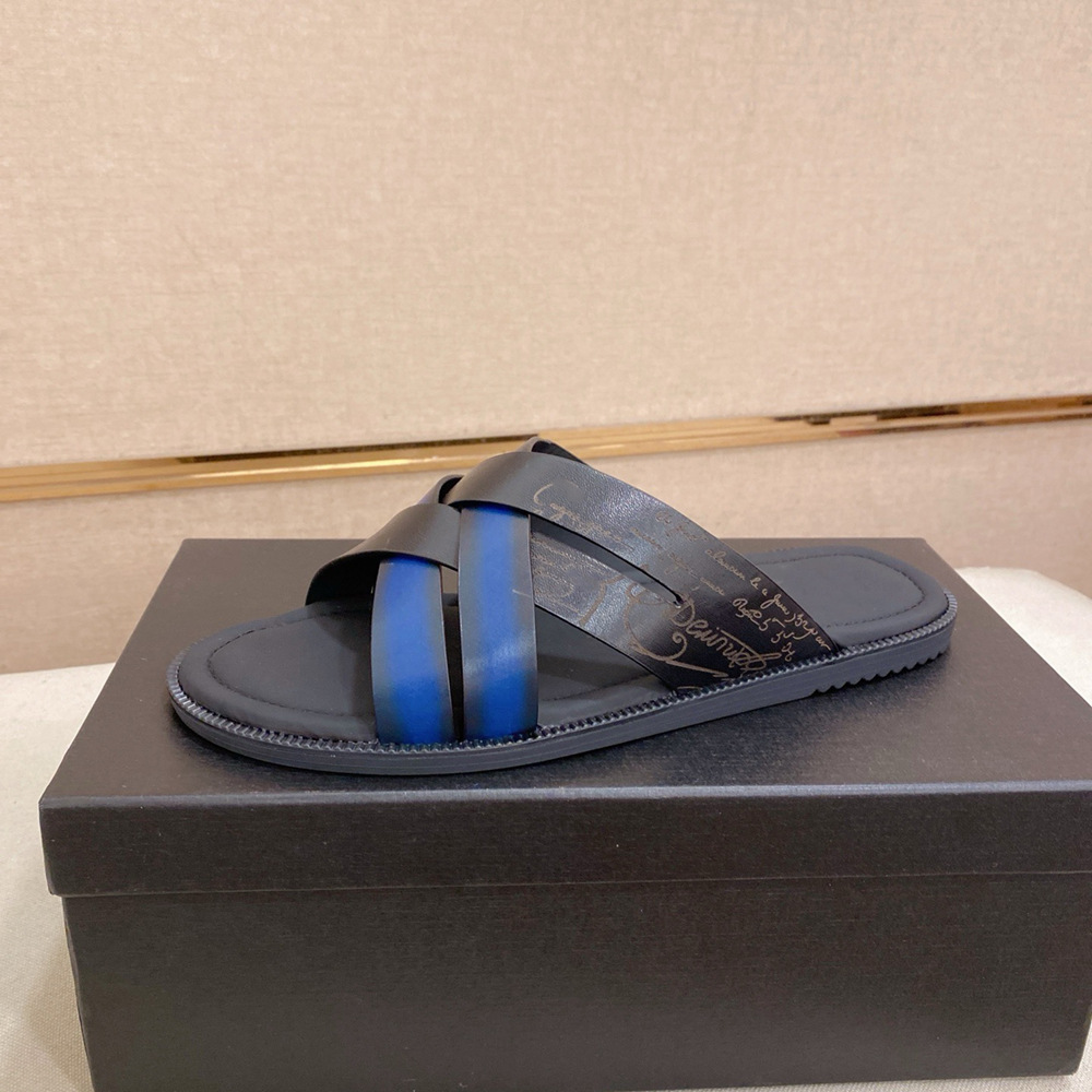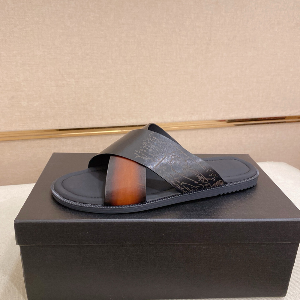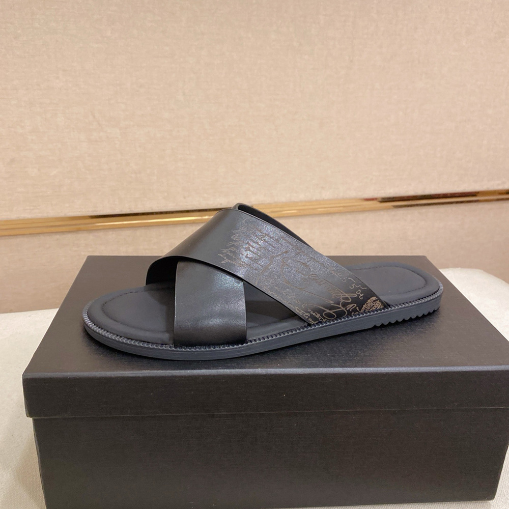 拖鞋男真皮交叉平底外穿时尚潮牌舒适英伦2025夏欧洲站牛皮印字